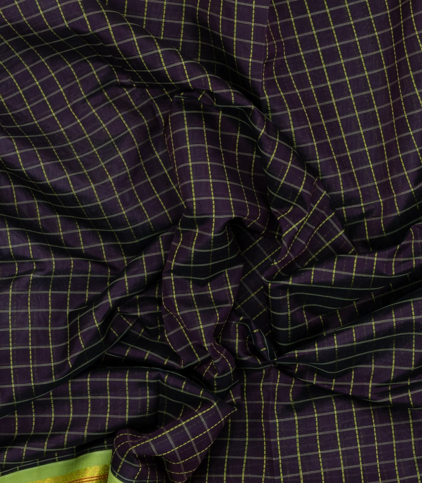 Black Handloom Silk Cotton Saree With Dotted Checks-SC3929