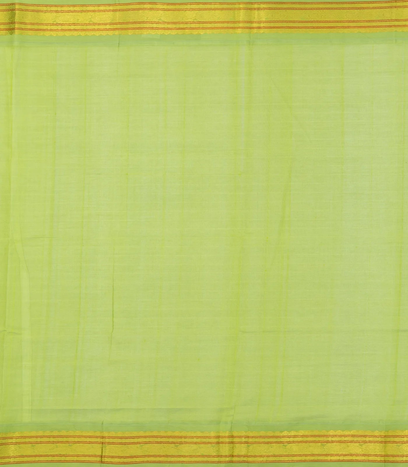 This handwoven silk cotton saree is filled with dotted checks in black body along with contrast border and pallu