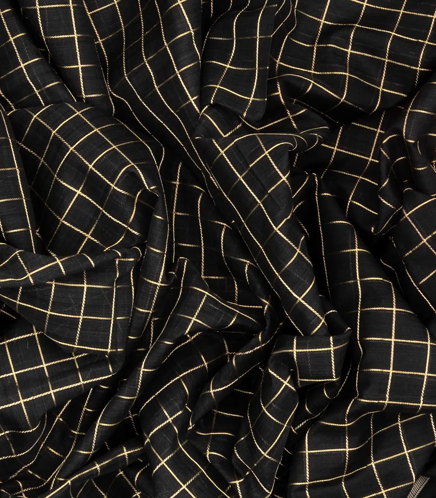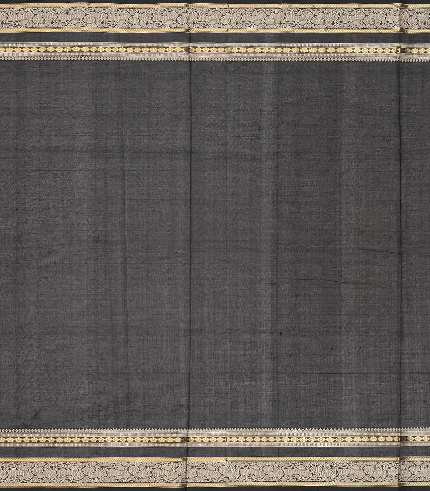 Black Handloom Silk Cotton Saree With Zari Checks-SC3309