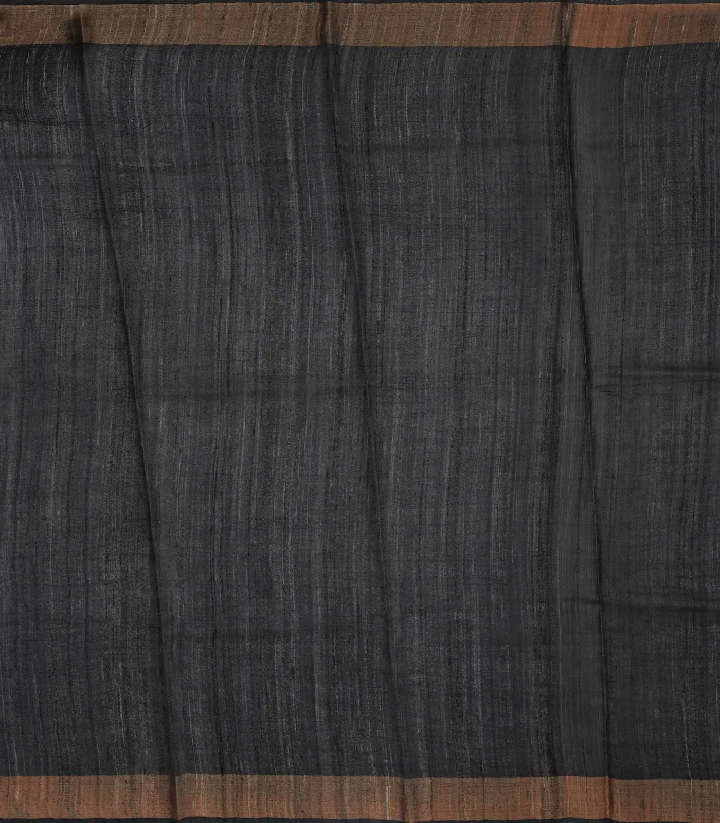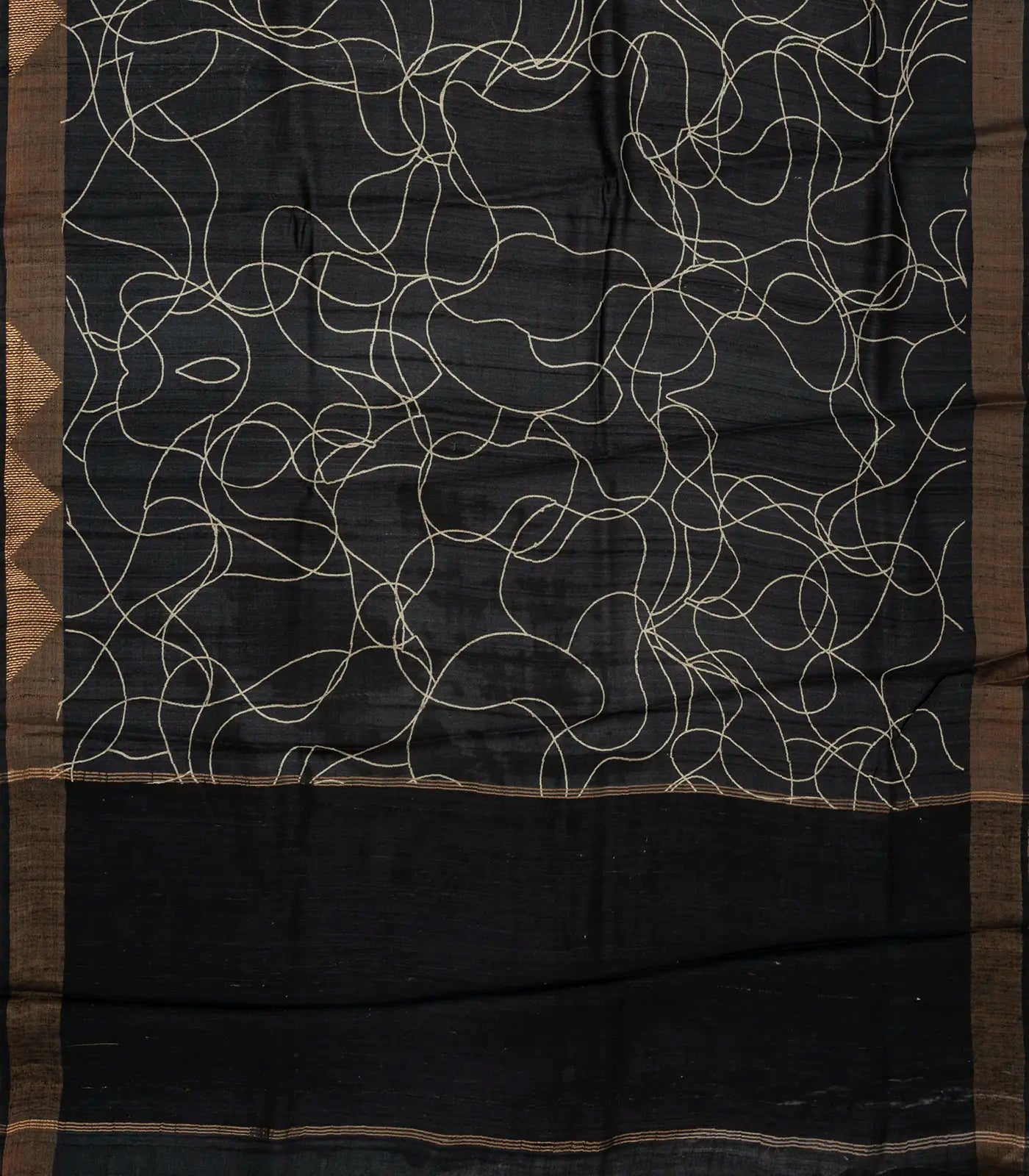 Black Handloom Tussar Silk Saree With Printed Spiral Motifs