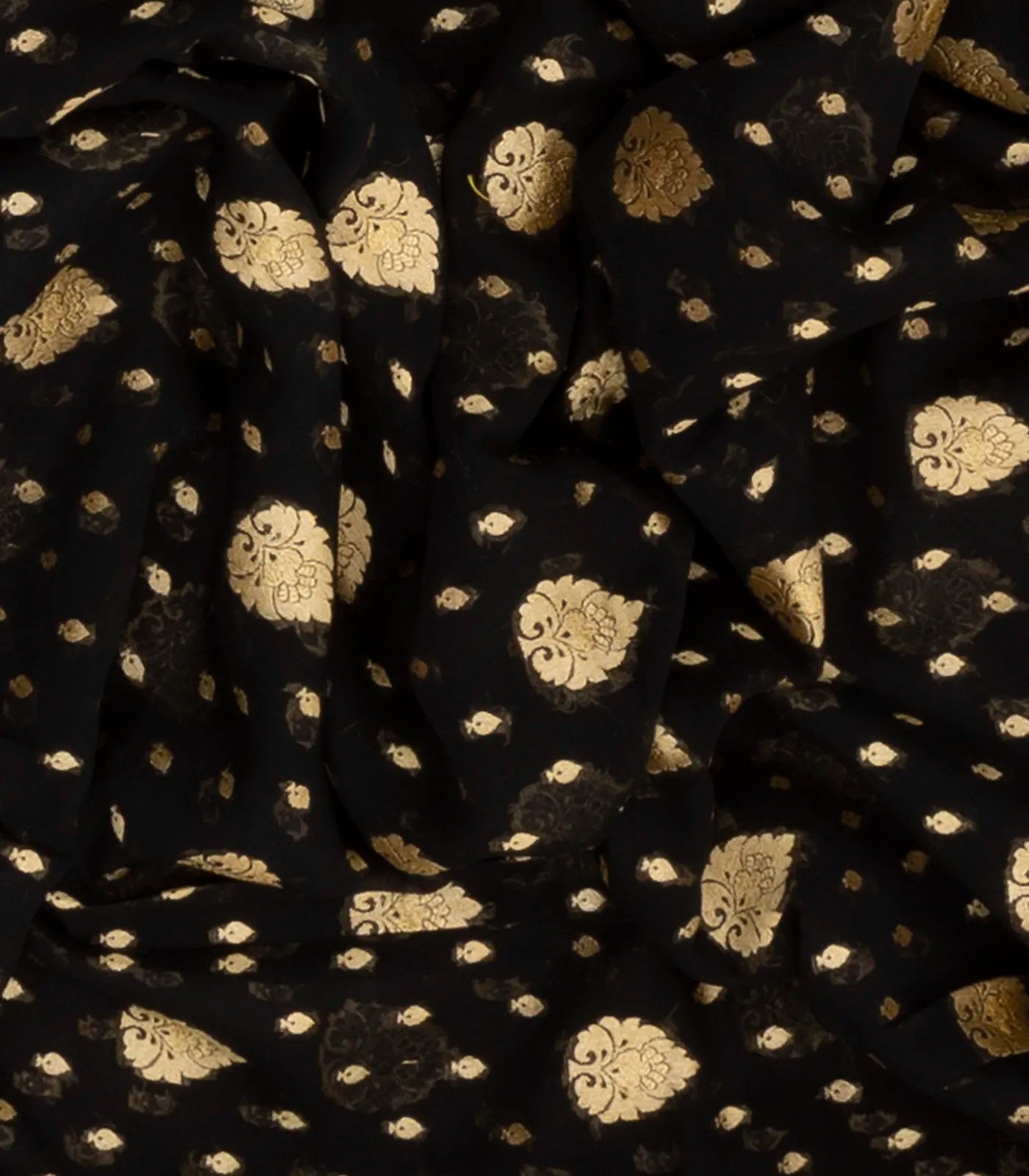 Black Handwoven Banarasi Khaddi Georgette Saree With Maroon Border-Black