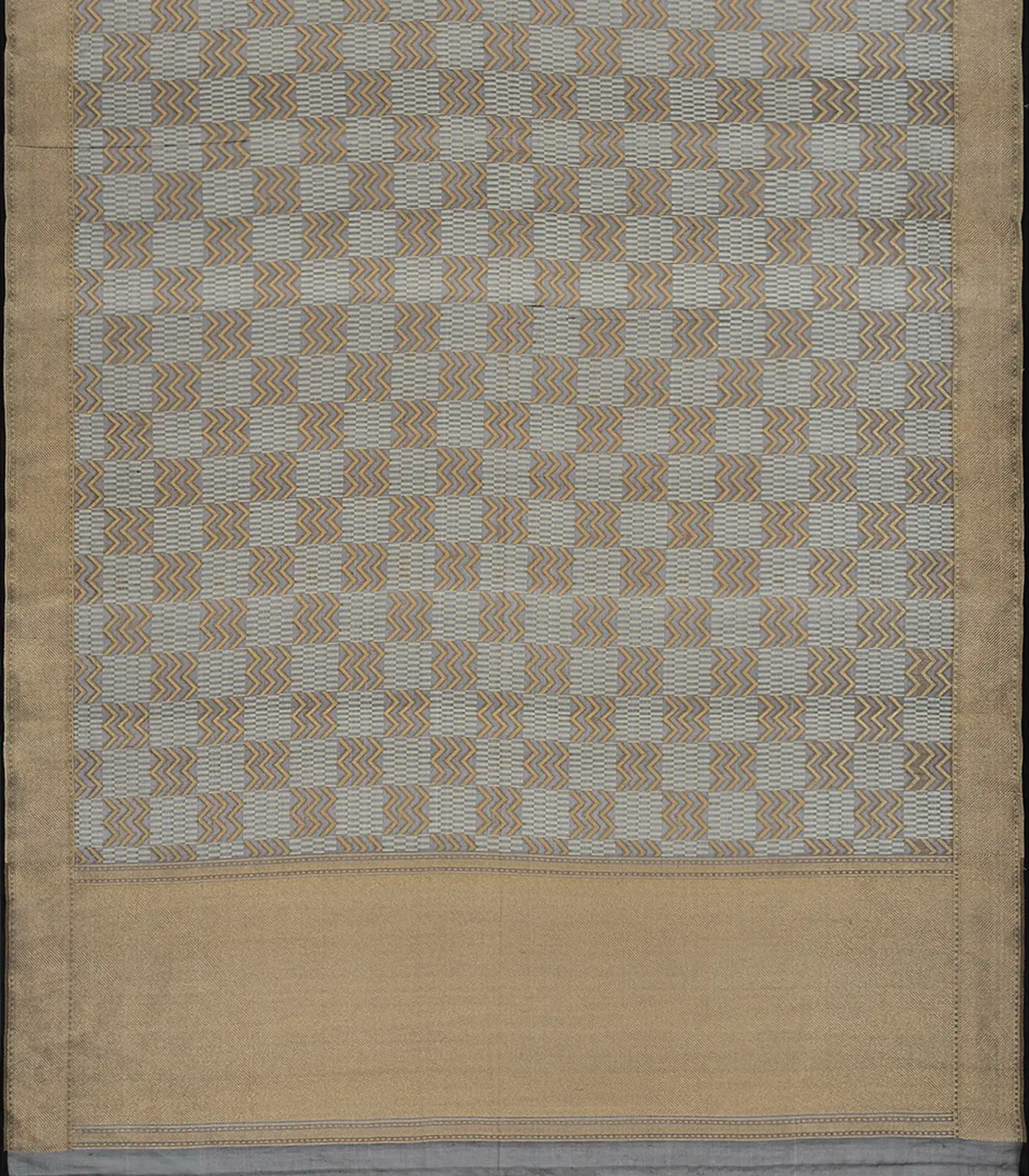 This handwoven banarasi kora silk saree with chevron motifs in black body along with border and pallu