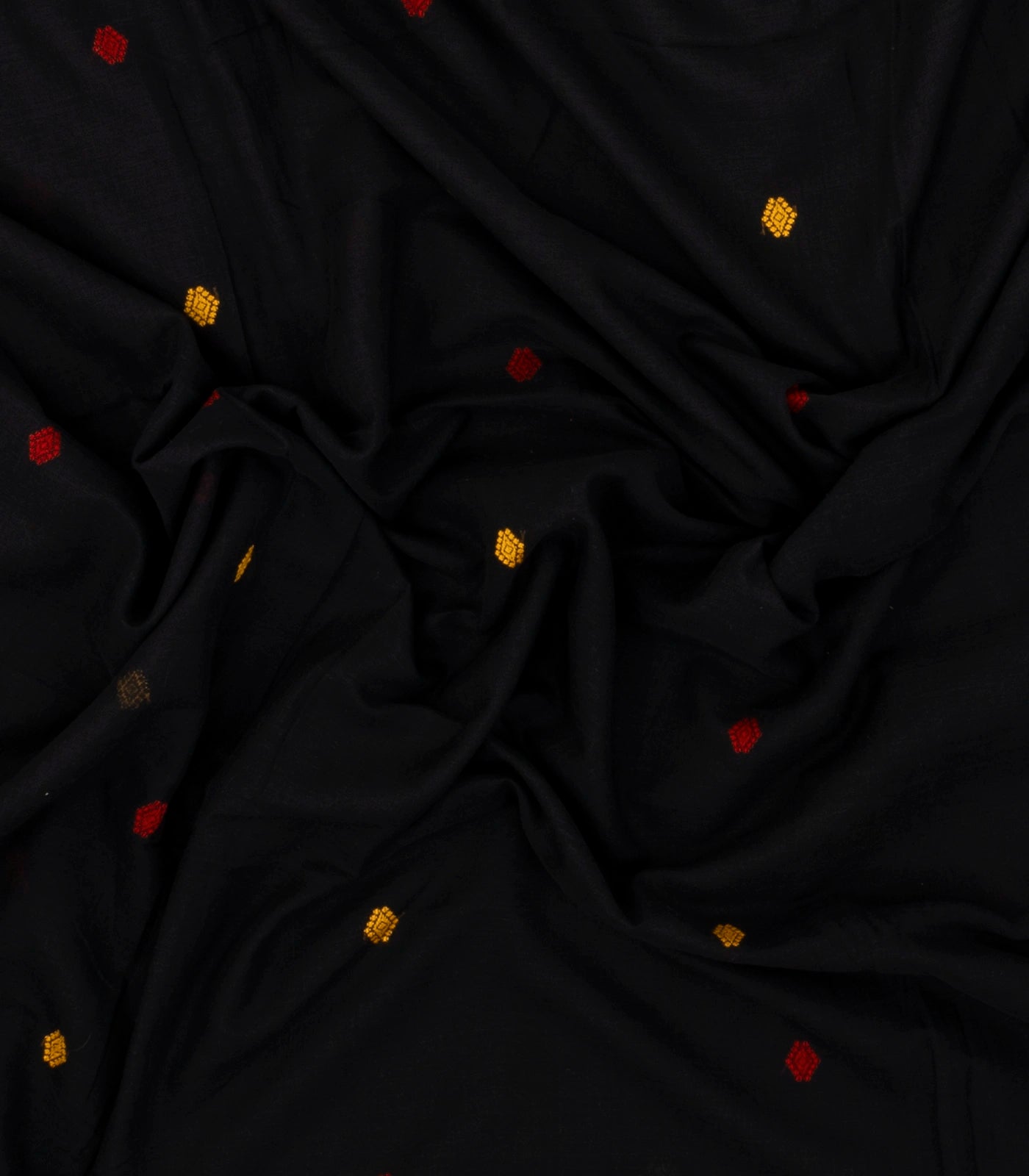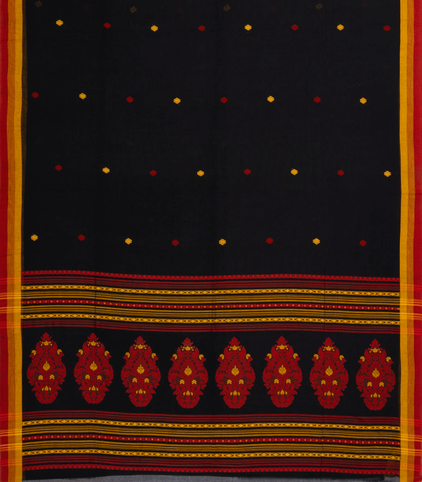 Black Handwoven Bengal Cotton Saree With Diamond Buttas-BG1518