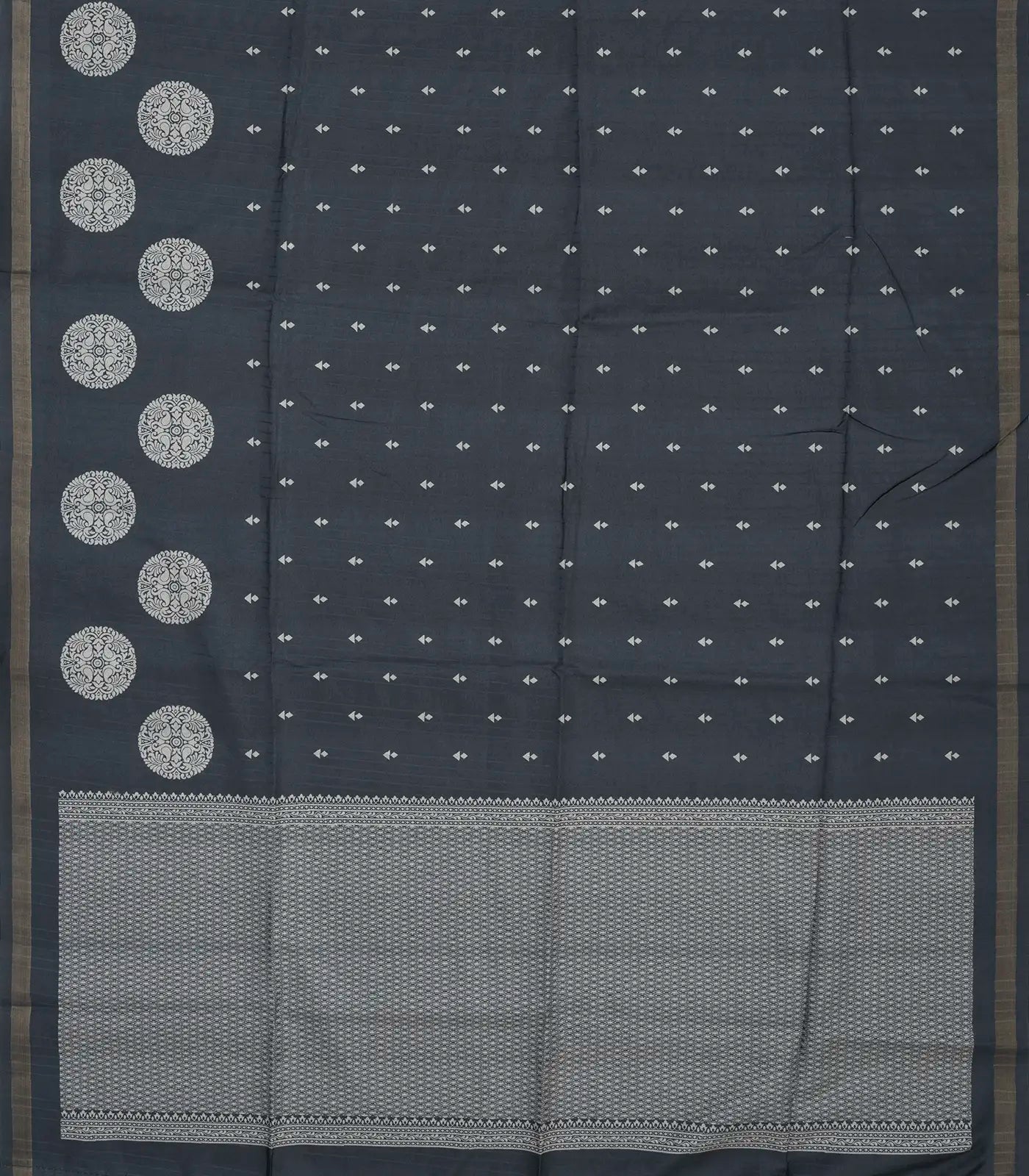 Black Woven Art Tussar Saree With Floral Buttas-BL3619
