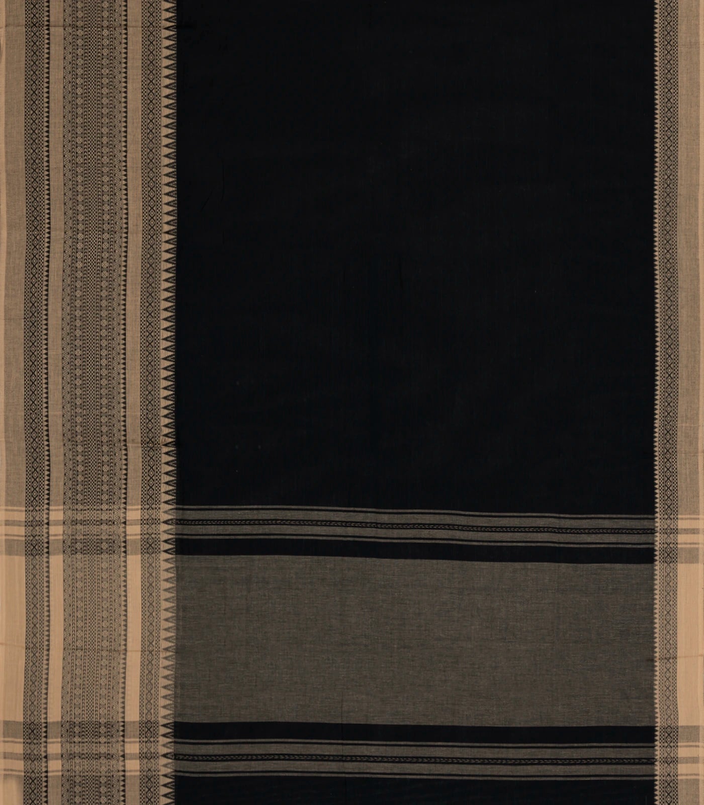 Black Woven Bengal Cotton Saree With Contrast Border-BG1897