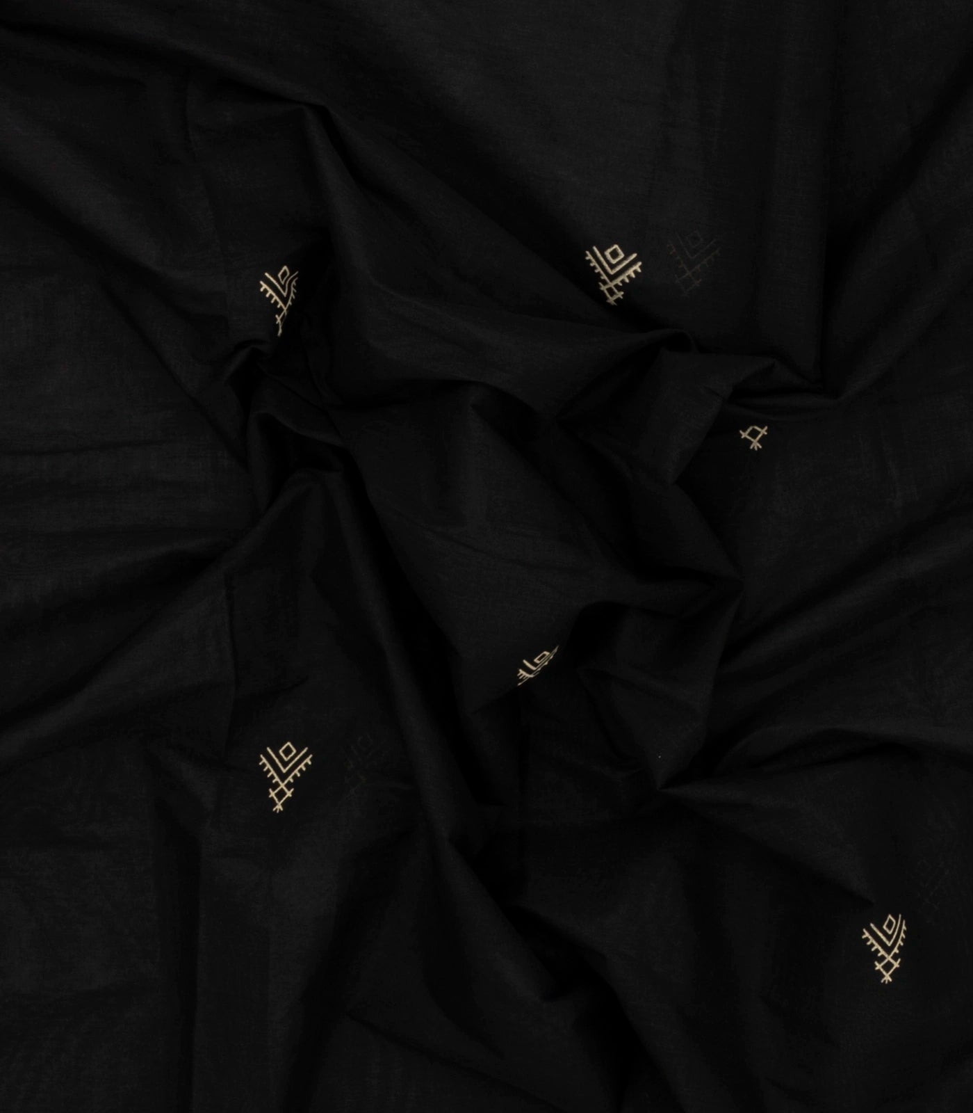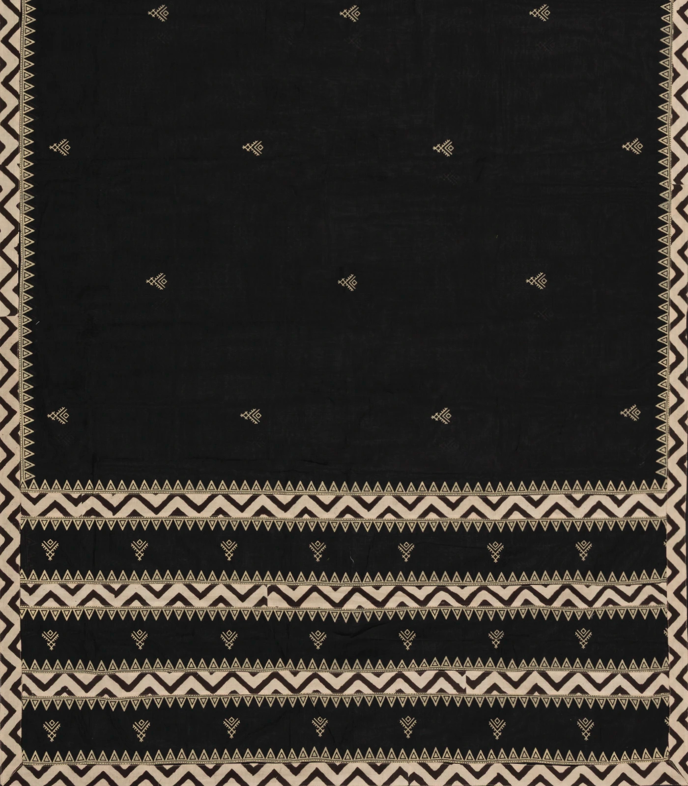 This woven chirala cotton saree is filled with geometric motifs in black body along with printed floral motifs in border and pallu