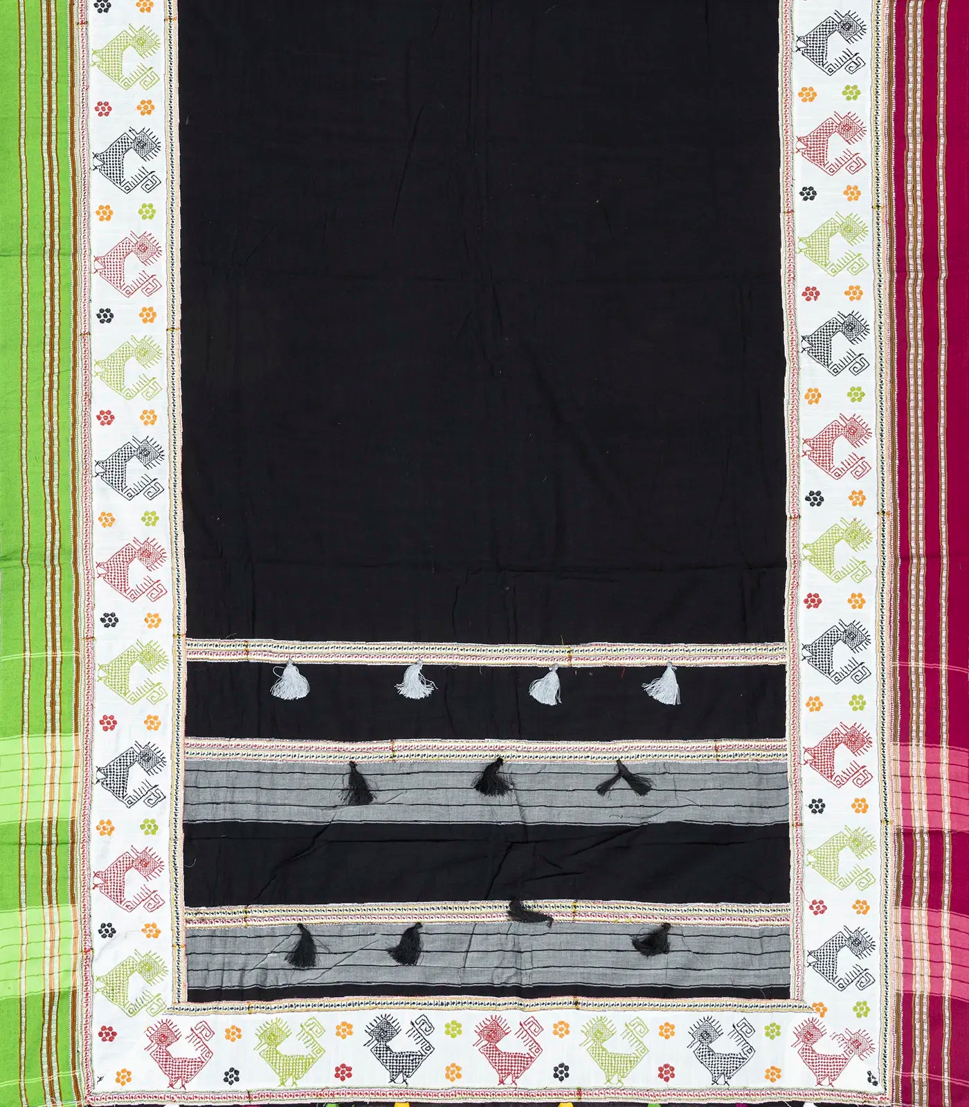 Black Woven Cotton Saree With Kasuti Hand Embroidered Border & Pallu-EN1765