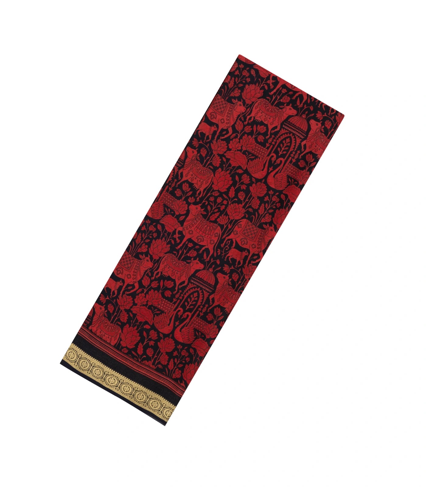 Black Woven Pure Silk Saree With Printed Cow Motifs-PS0663