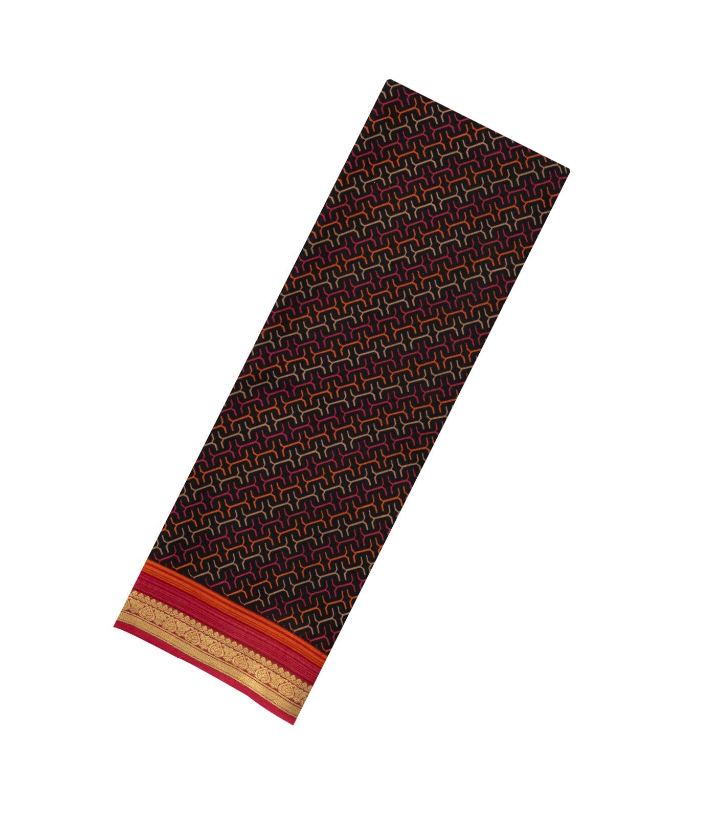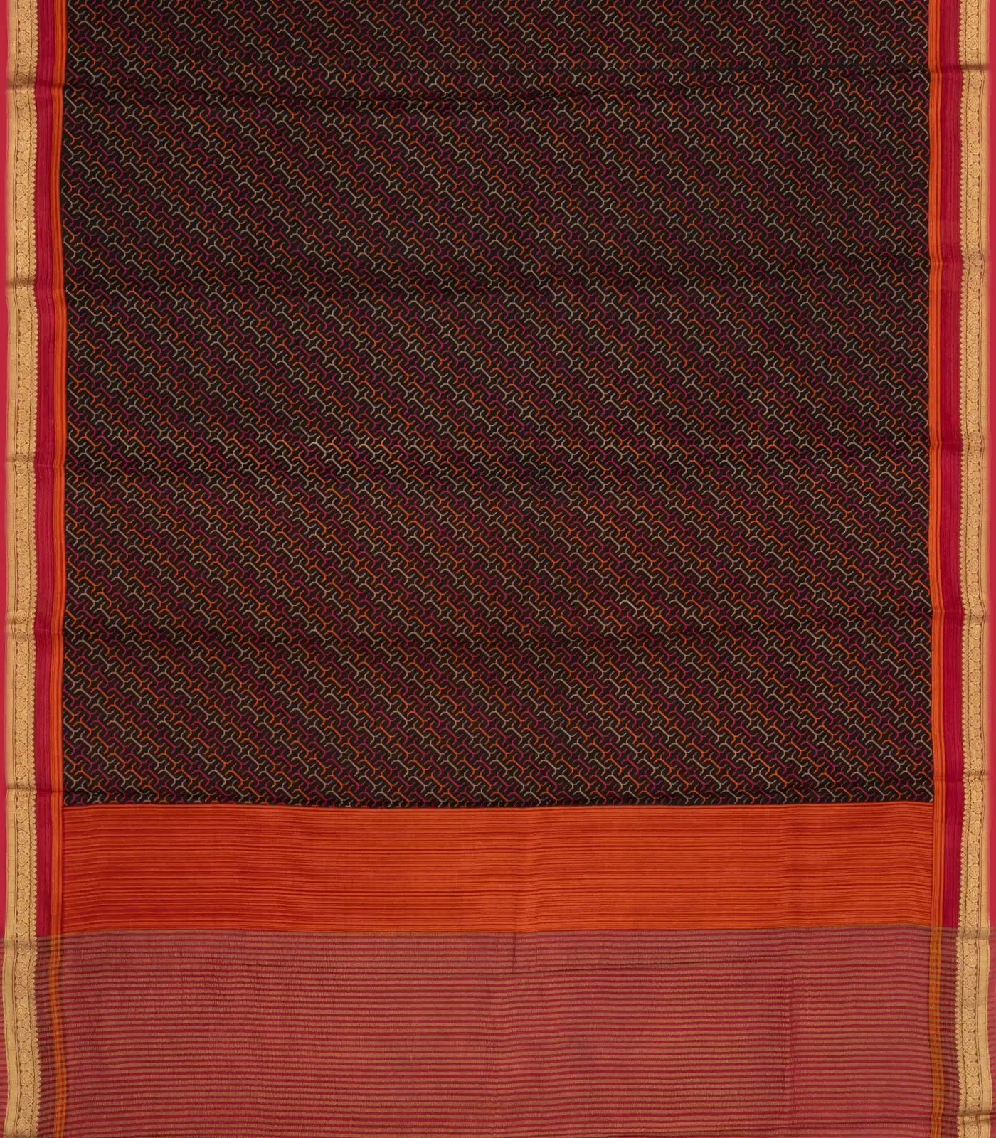 This woven pure silk saree is filled with printed geometric motifs in black body along with border and pallu