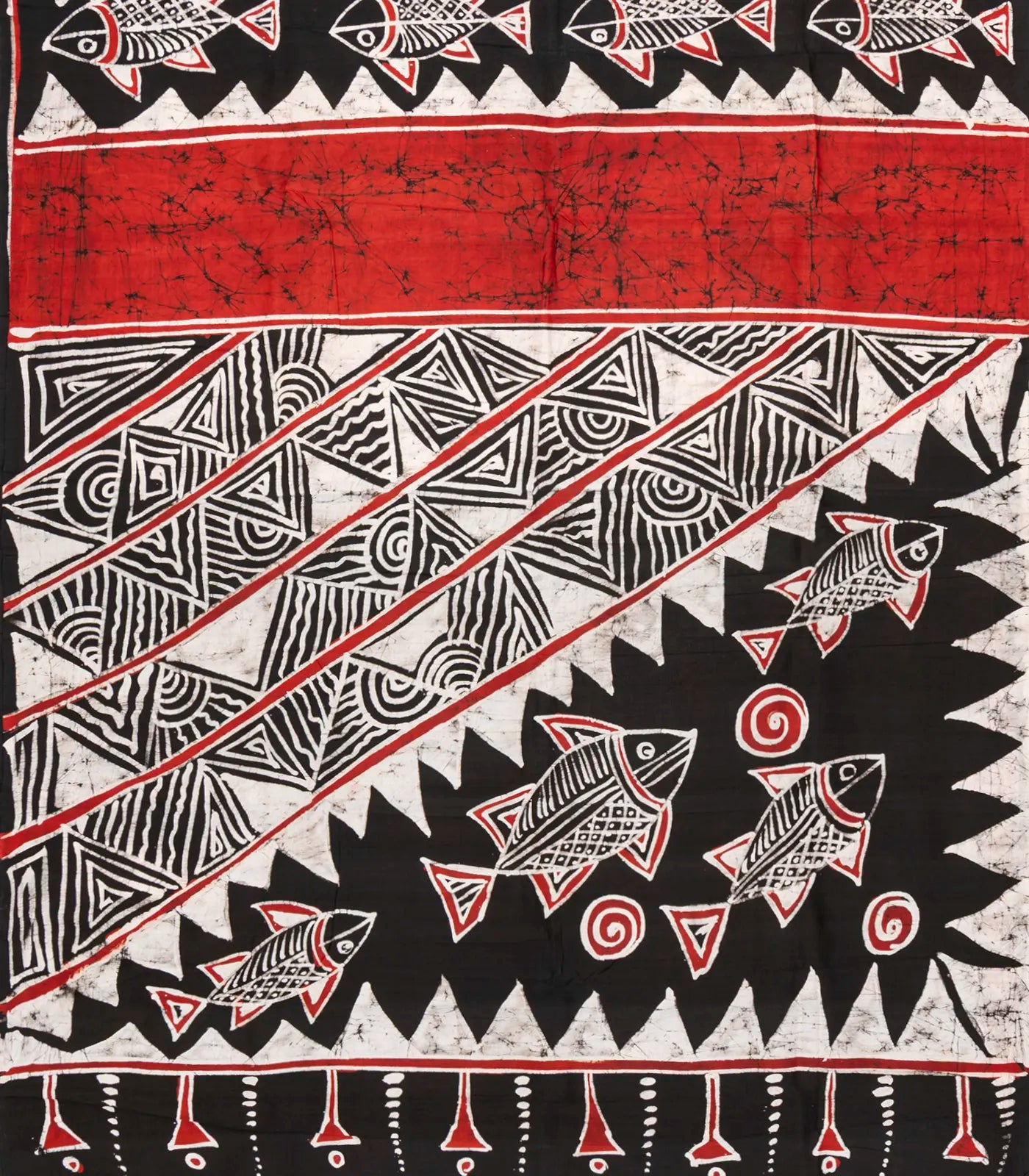 This woven silk saree is filled with printed fish motifs in black body along with pallu
