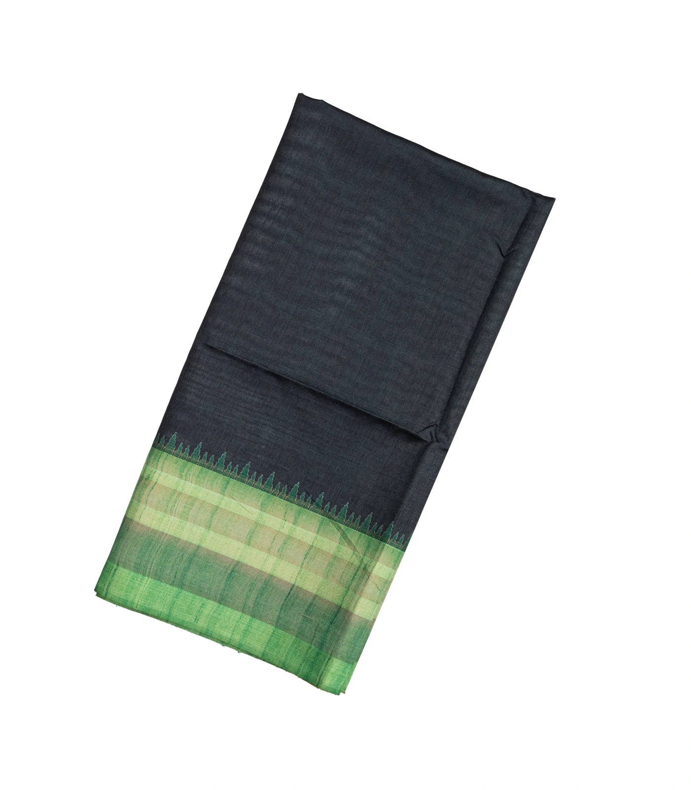 This woven synthetic dupion saree is filled with plain black body along with contrast border and pallu