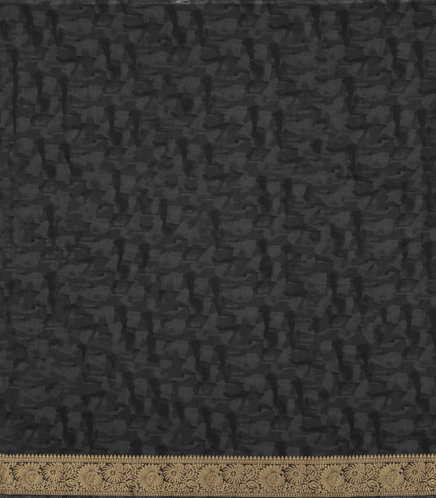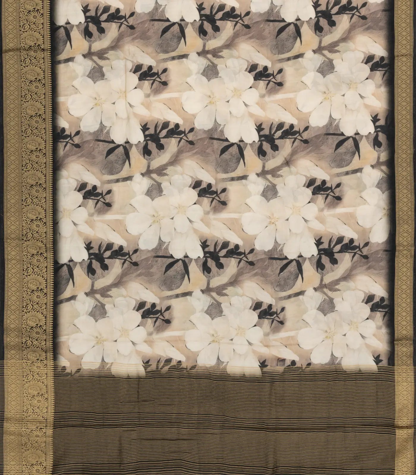 This woven synthetic viscose saree is filled with printed floral motifs in black body along with border and pallu