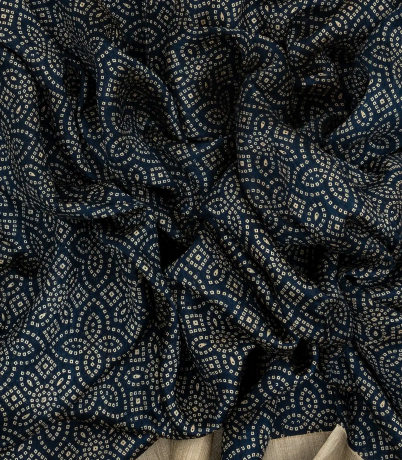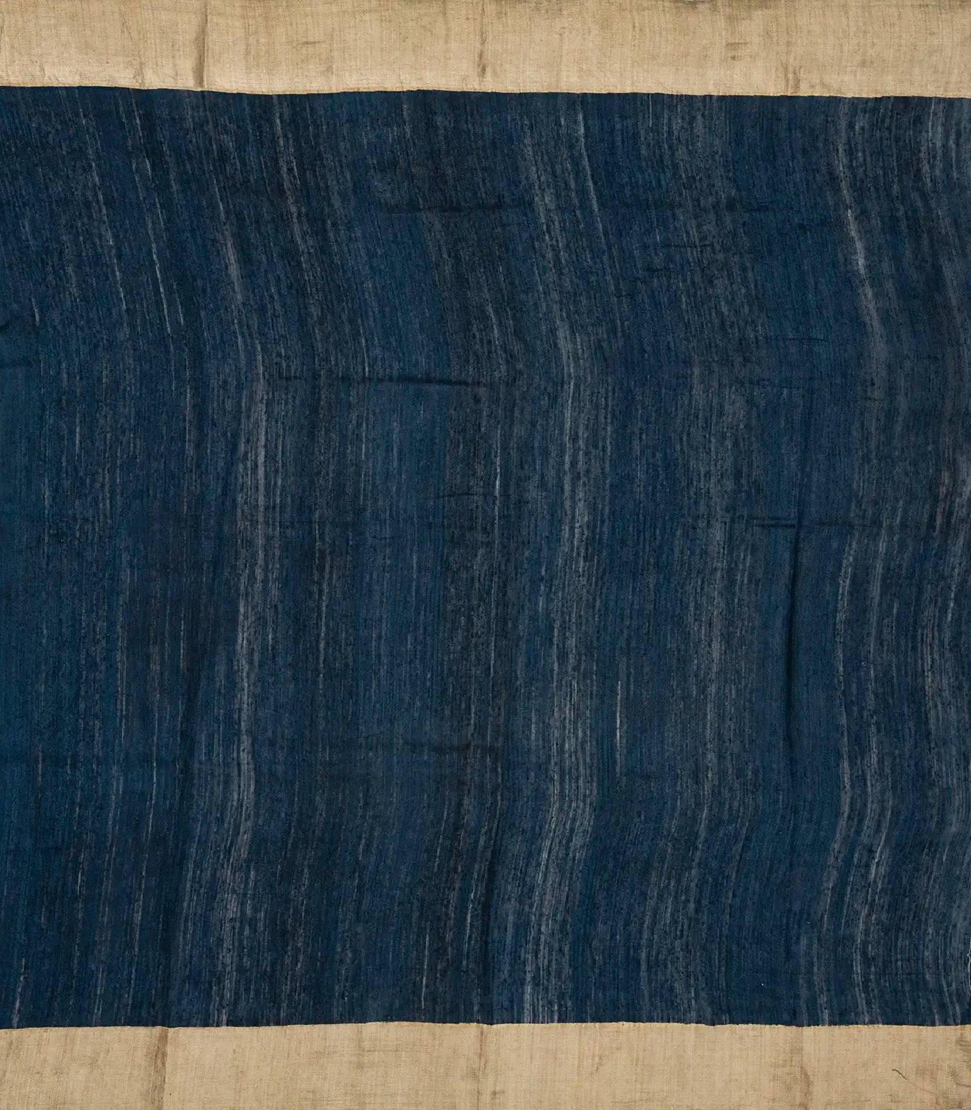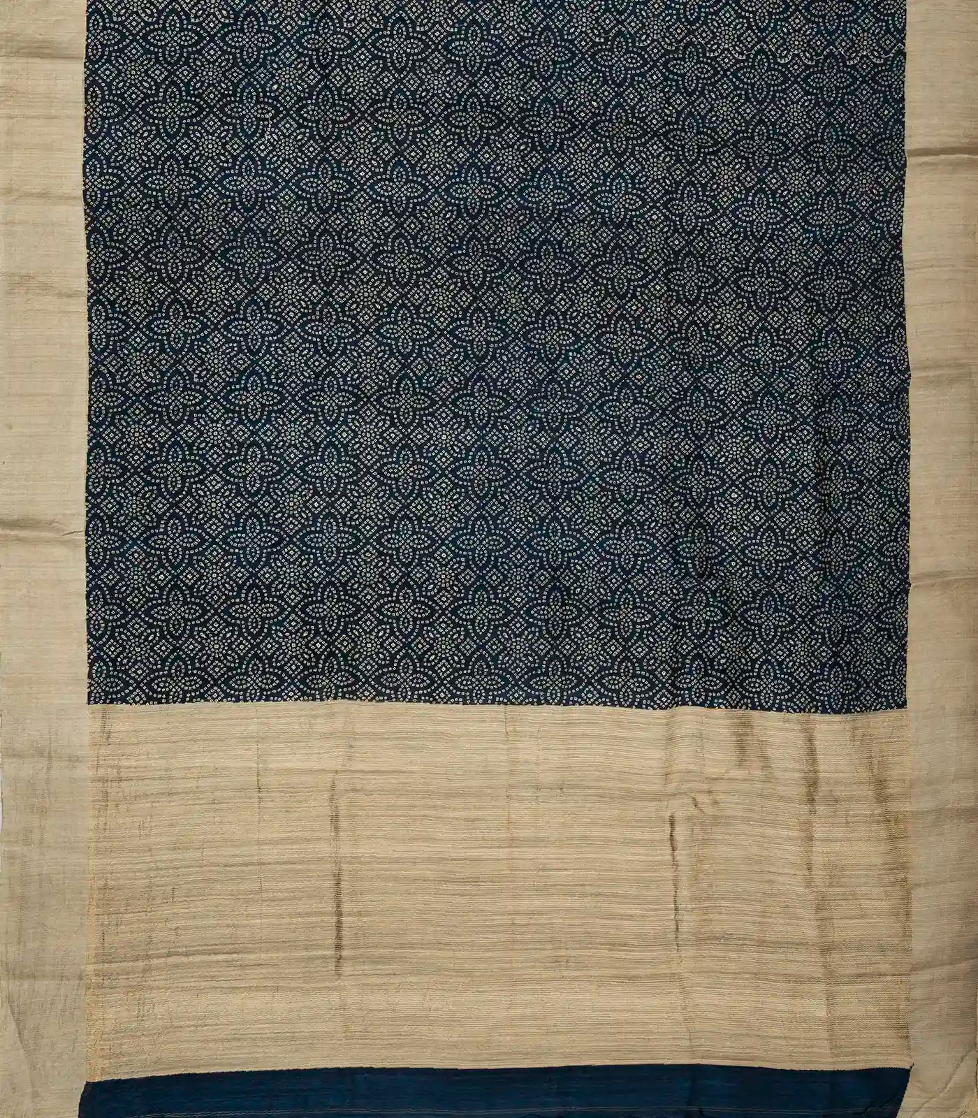 This woven tussar silk saree is filled with printed floral motifs in black body along with zari border and pallu