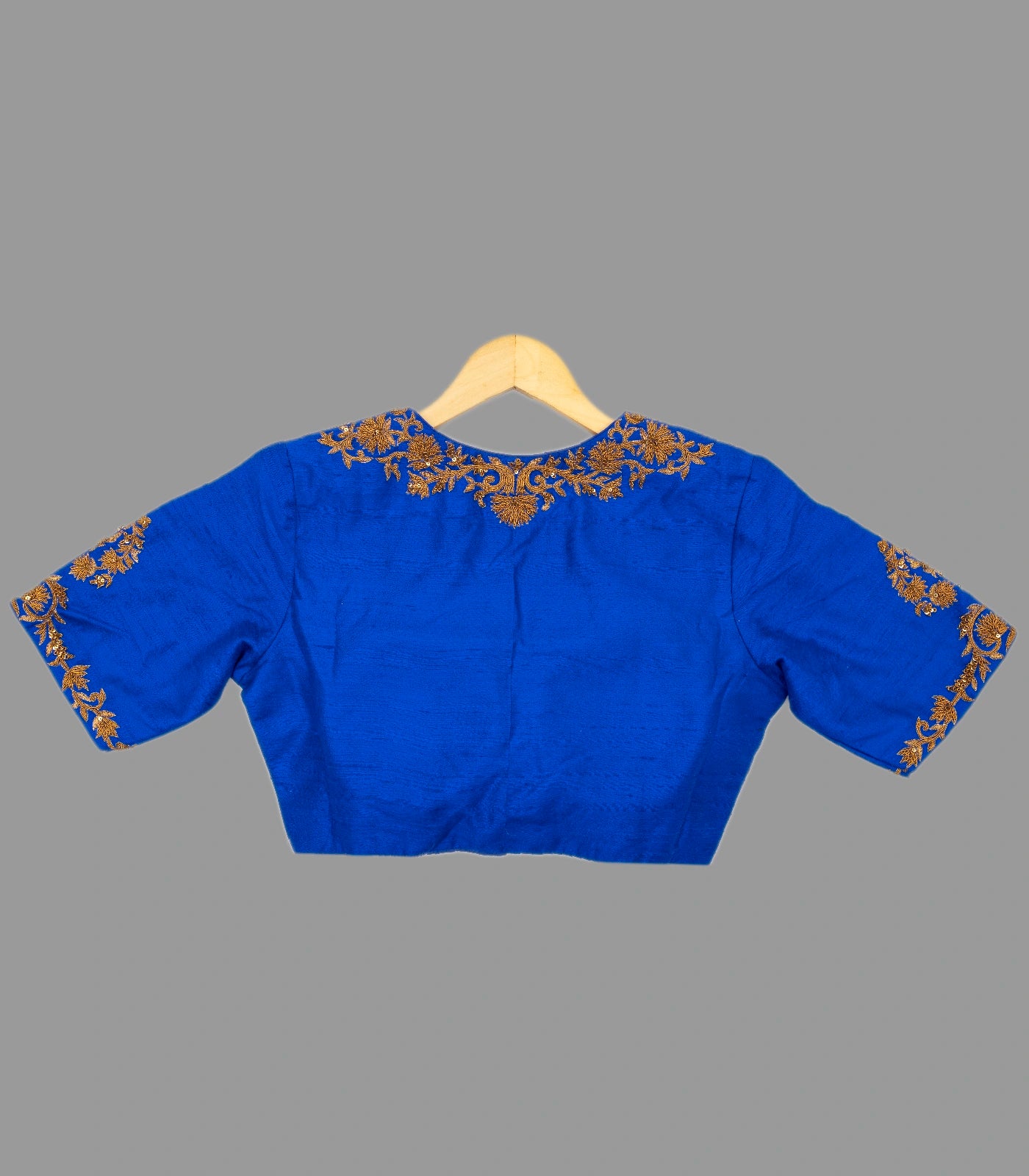 Ready made blouse Waist: 37 cms, Chest: 45 cms, Sleeve Length: 26 cms, Sleeve Round: 30 cms