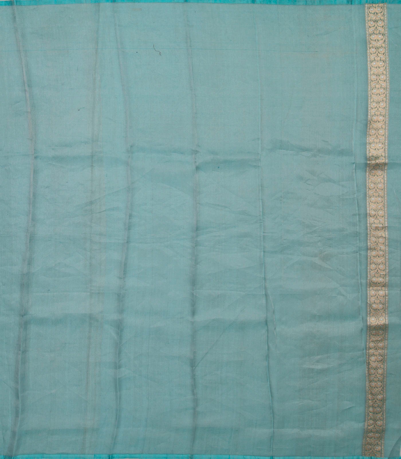 This woven banarasi tissue silk saree with diagonal stripes in blue & green body along with pallu