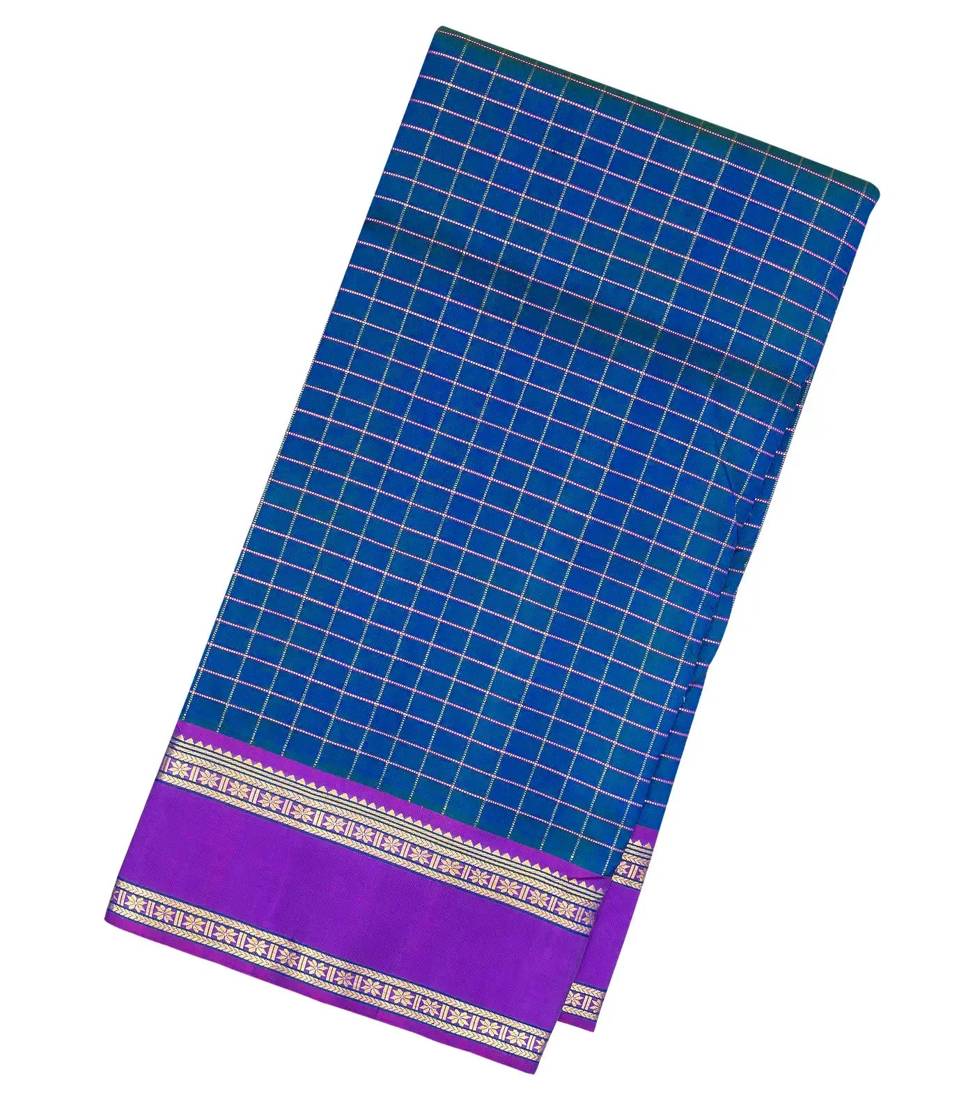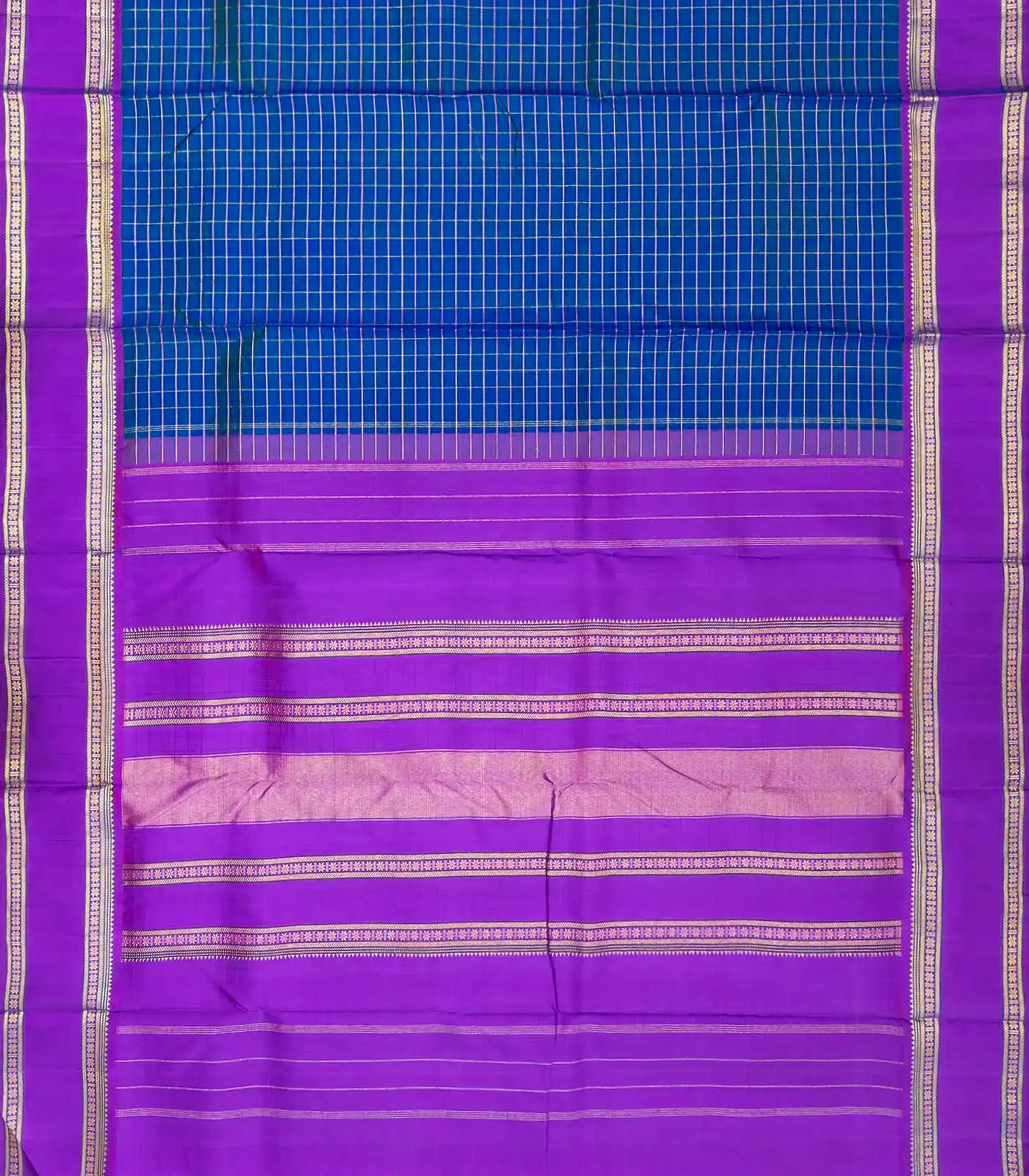 Blue Handloom 9 Yards Kanchipuram Silk Saree With Zari Checks-KA12255