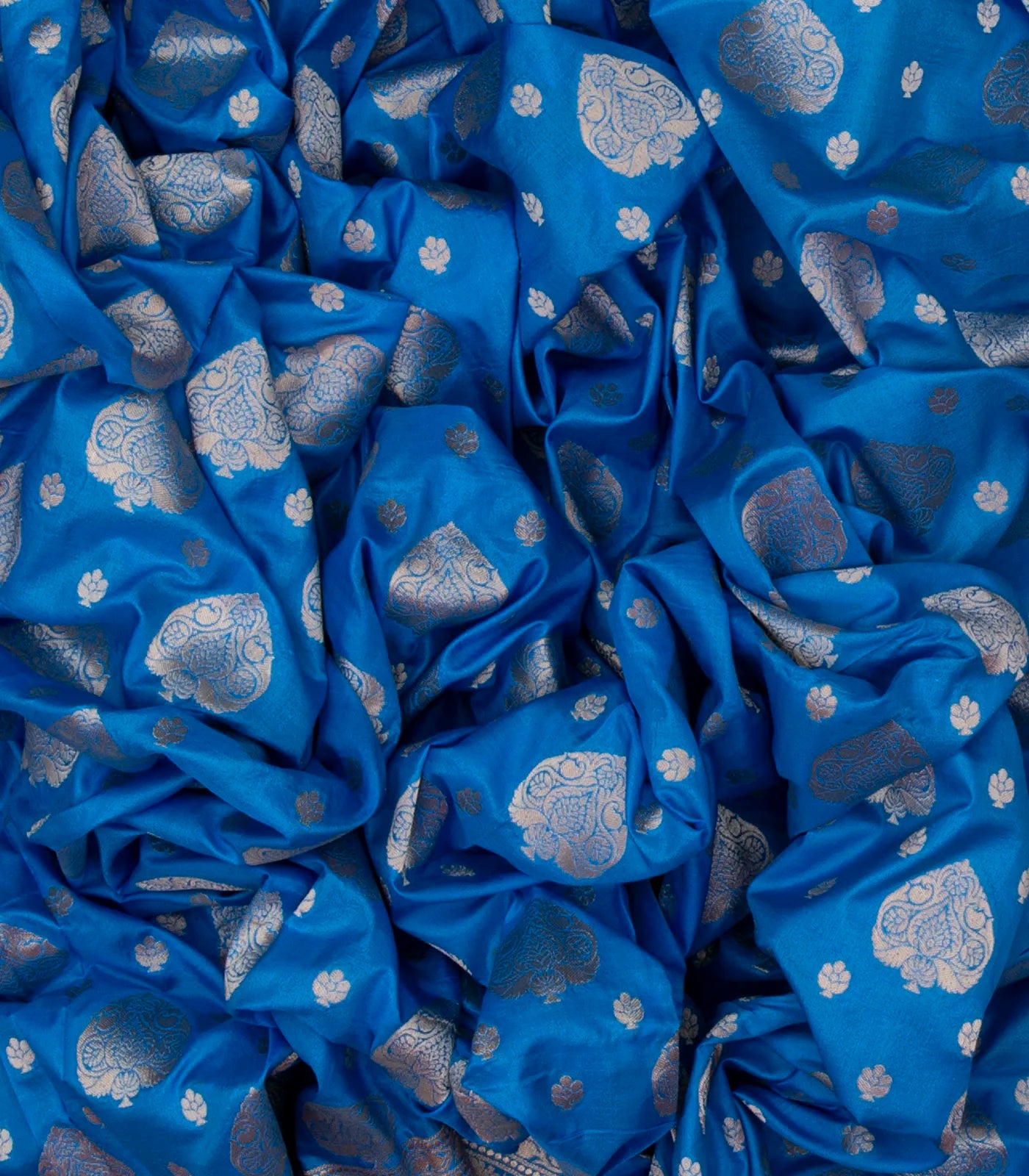 Blue Handloom Banarasi Silk Saree With Floral Motifs