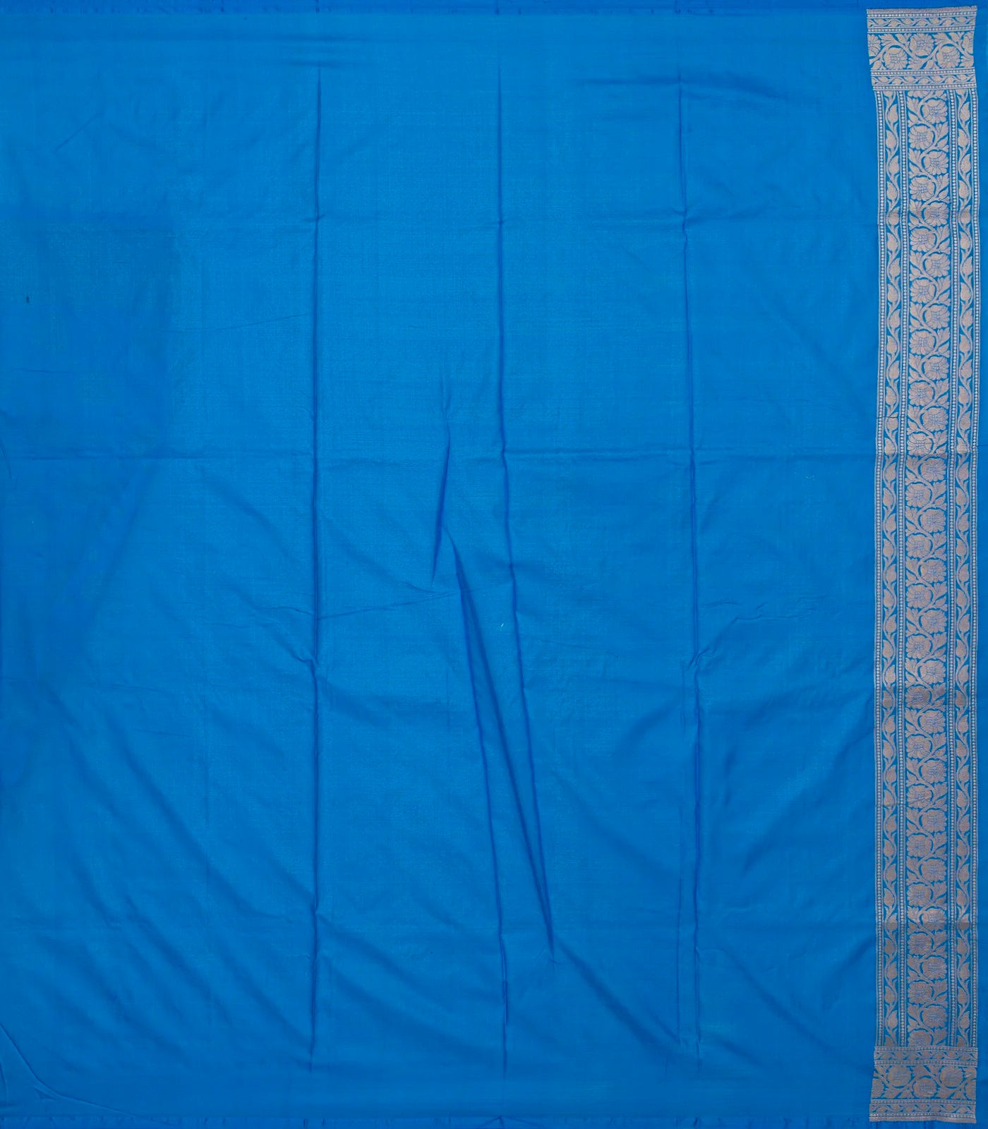 This handwoven banarasi silk saree is filled with floral motifs in blue body along with zari border and pallu