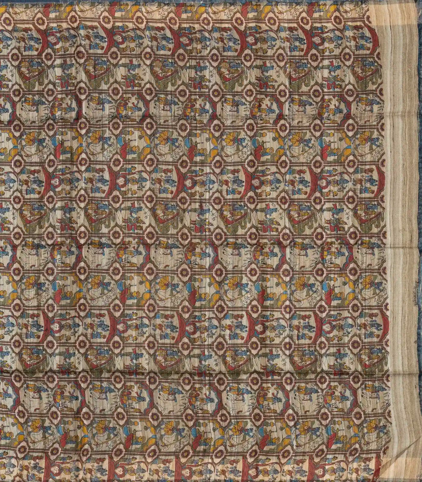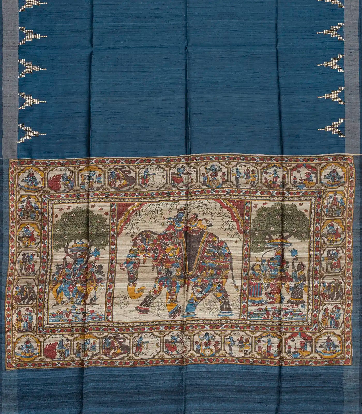 This handwoven dupion silk saree is filled with blue body along with border and printed pallu