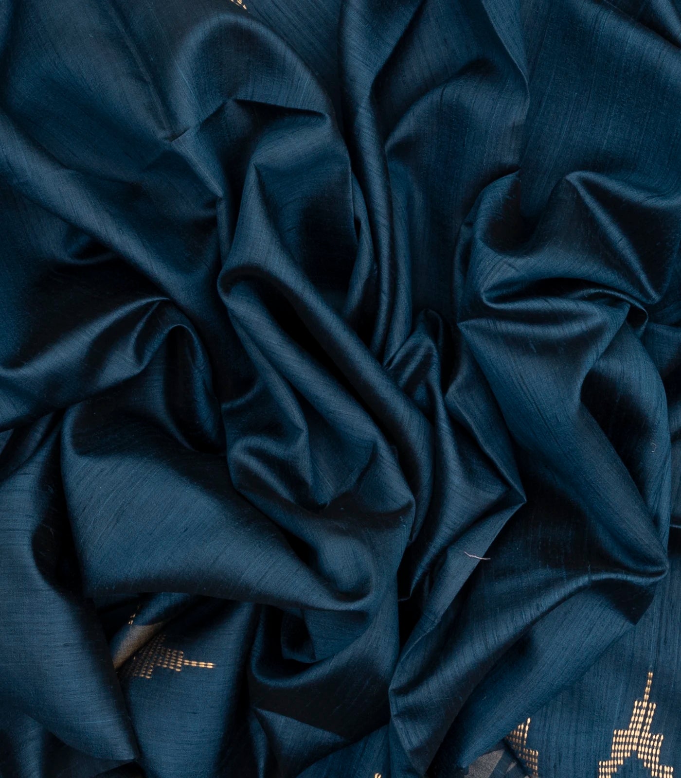 Blue Handloom Dupion Silk Saree With Printed Pallu-DS0496