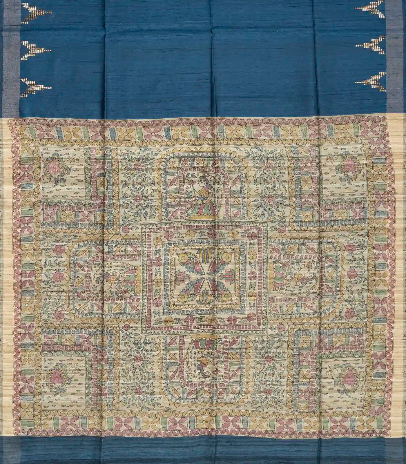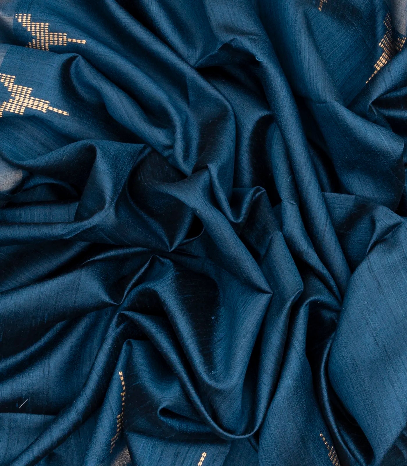 Blue Handloom Dupion Silk Saree With Printed Pallu-DS0498
