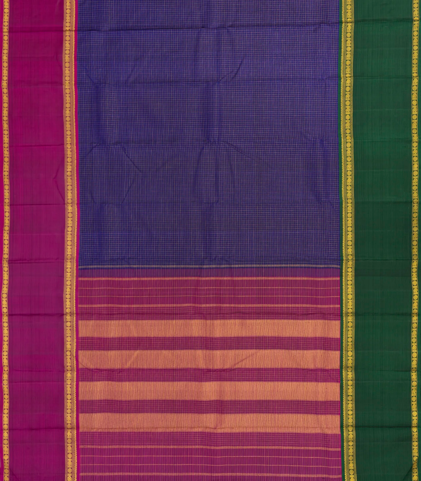 Blue Handloom Kanchipuram Silk Saree With Checks & Ganga Jamuna Border-KA14022