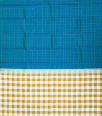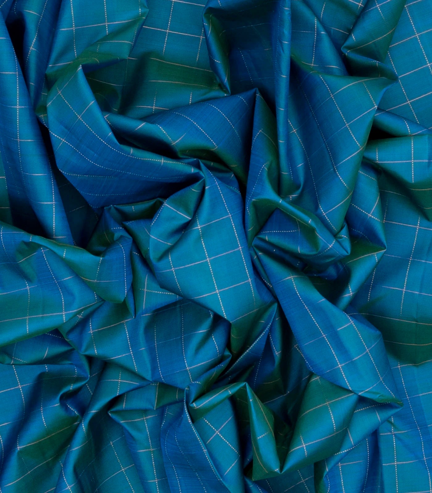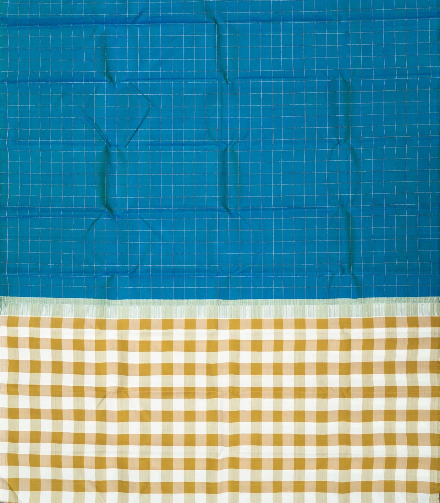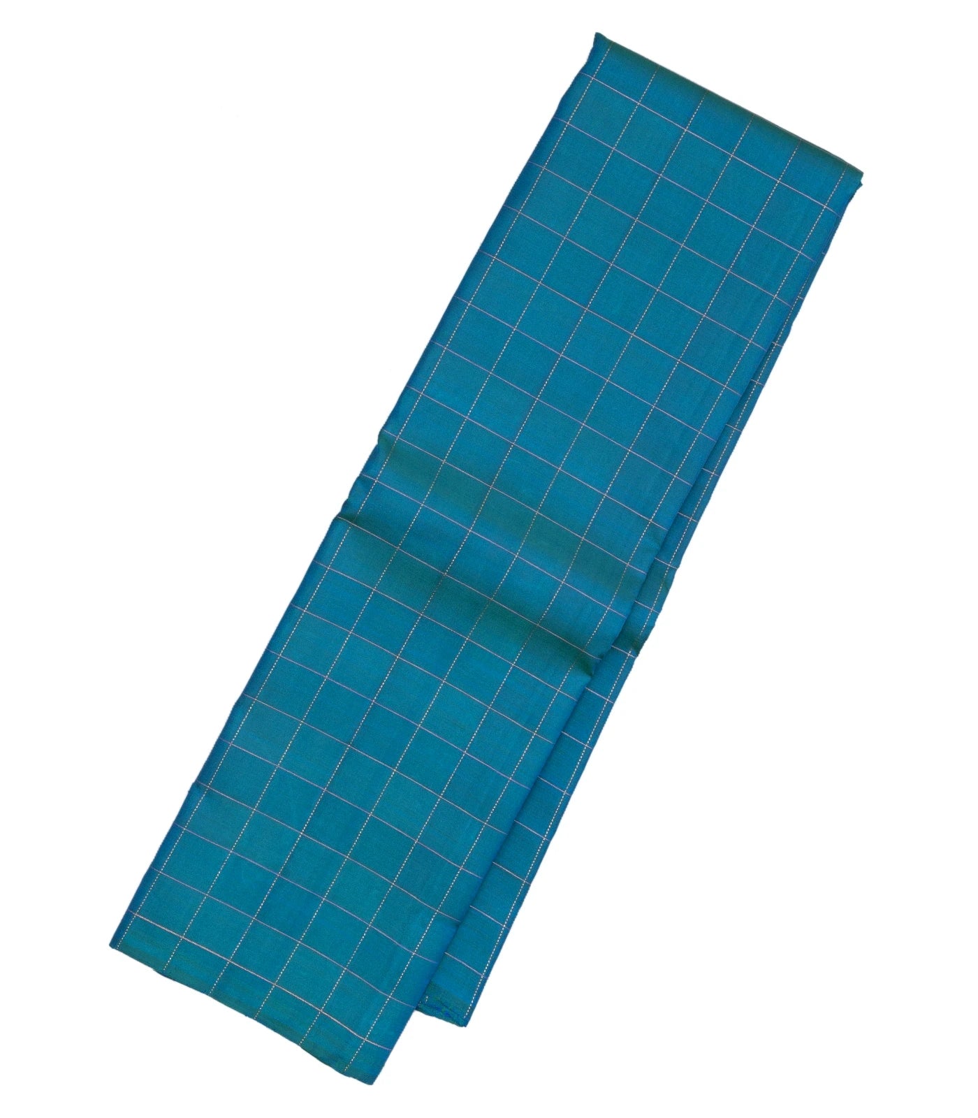 This handwoven kanchipuram silk saree is filled with zari checks in blue body along with contrast checked pallu