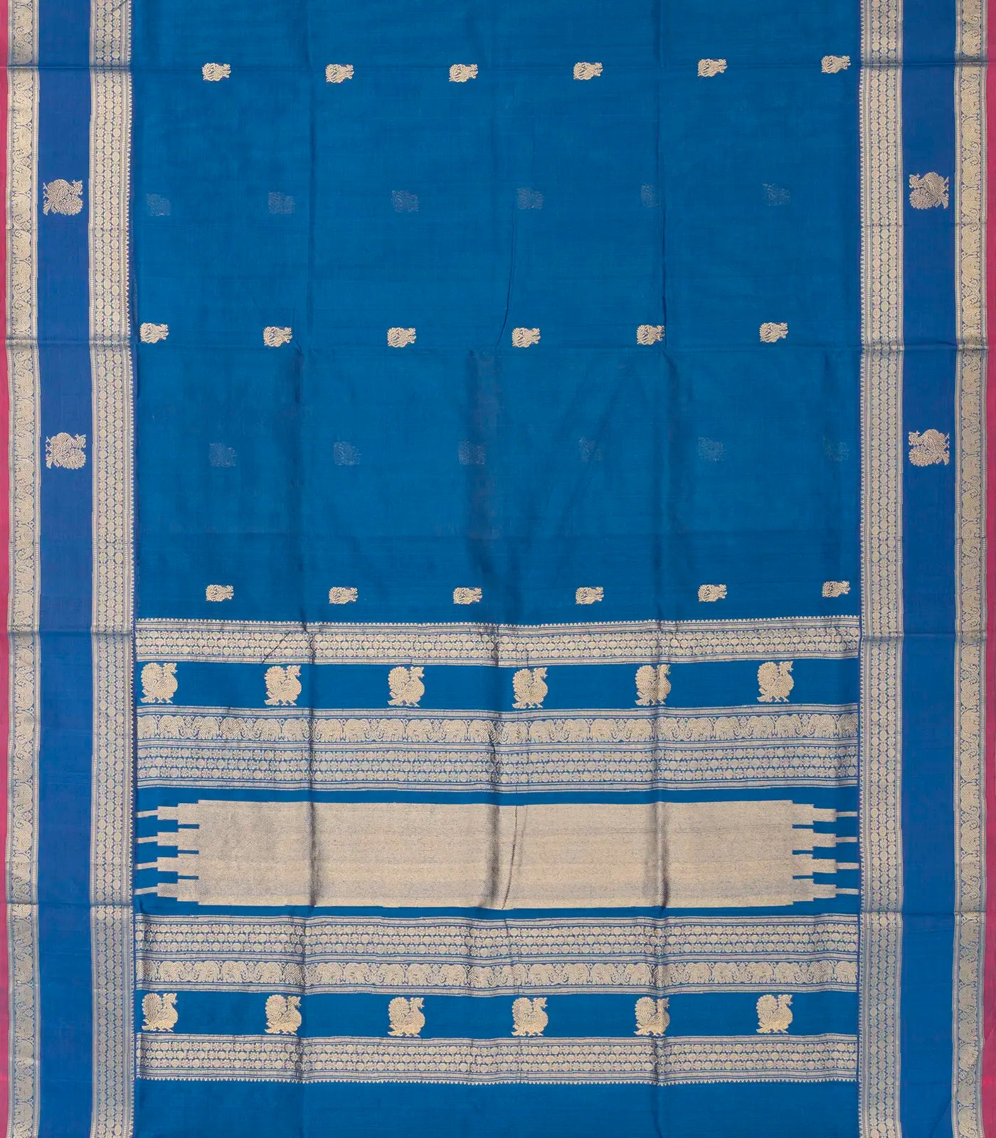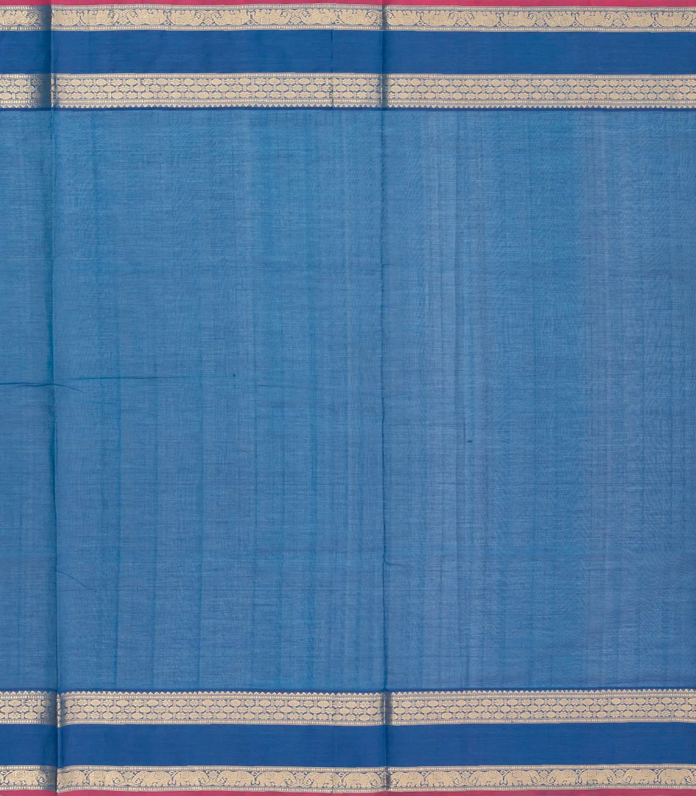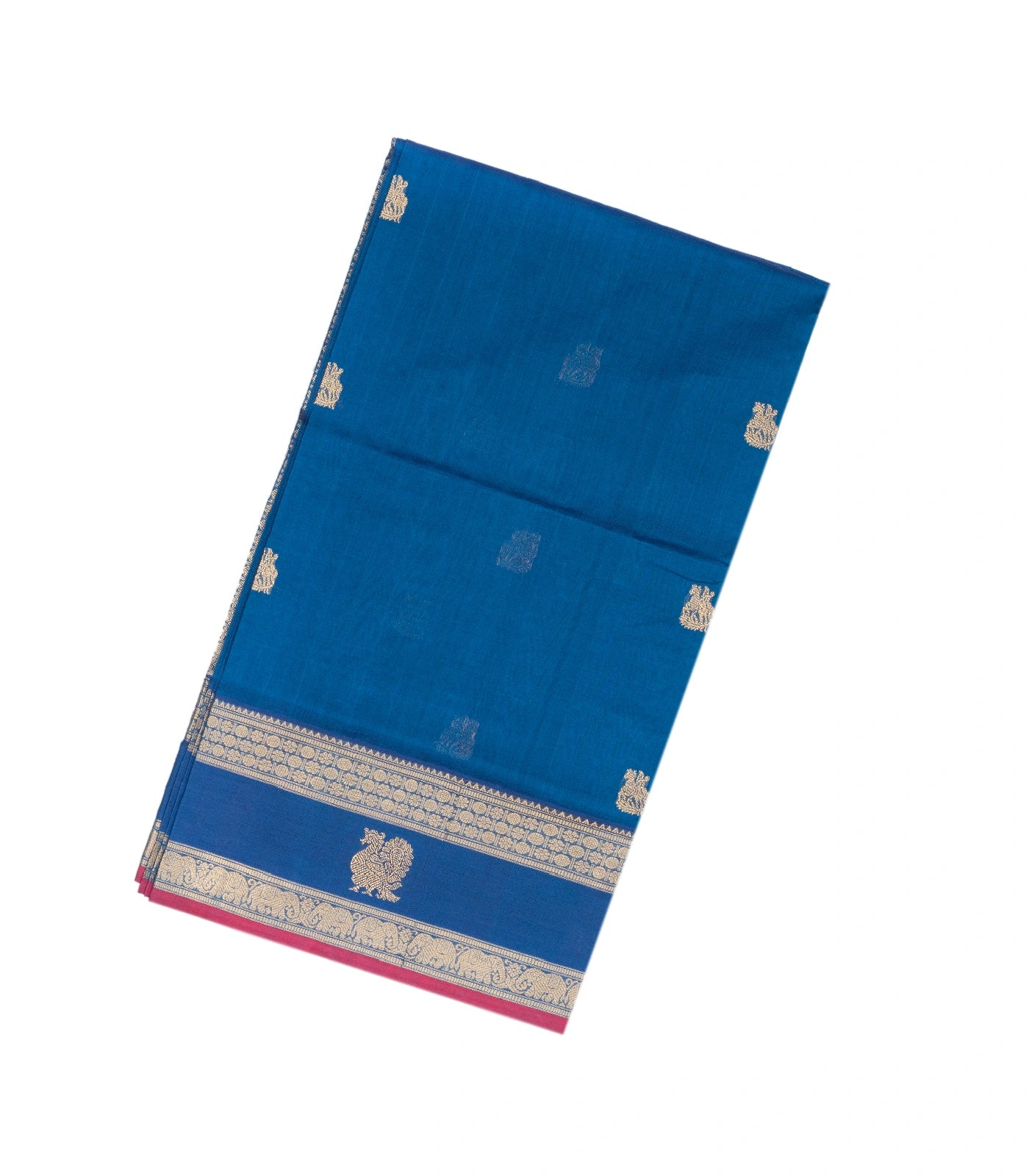 Blue Handloom Silk Cotton Saree With Horse Buttas-SC3329