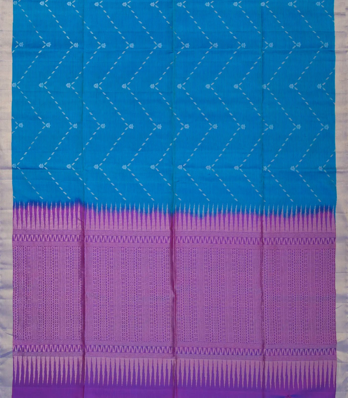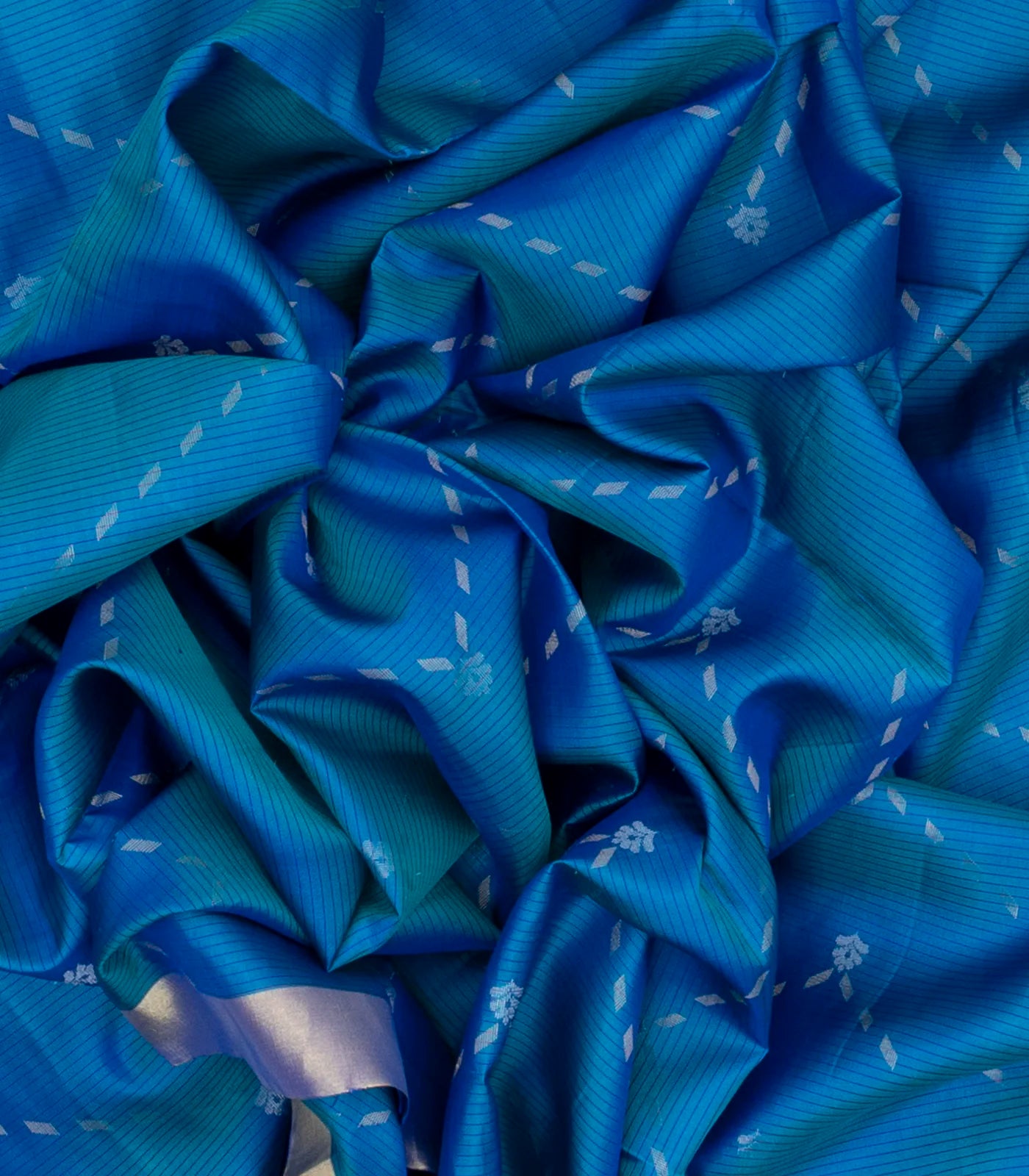This handwoven soft silk saree is filled with stripes & floral motifs in blue body along with zari border and pallu