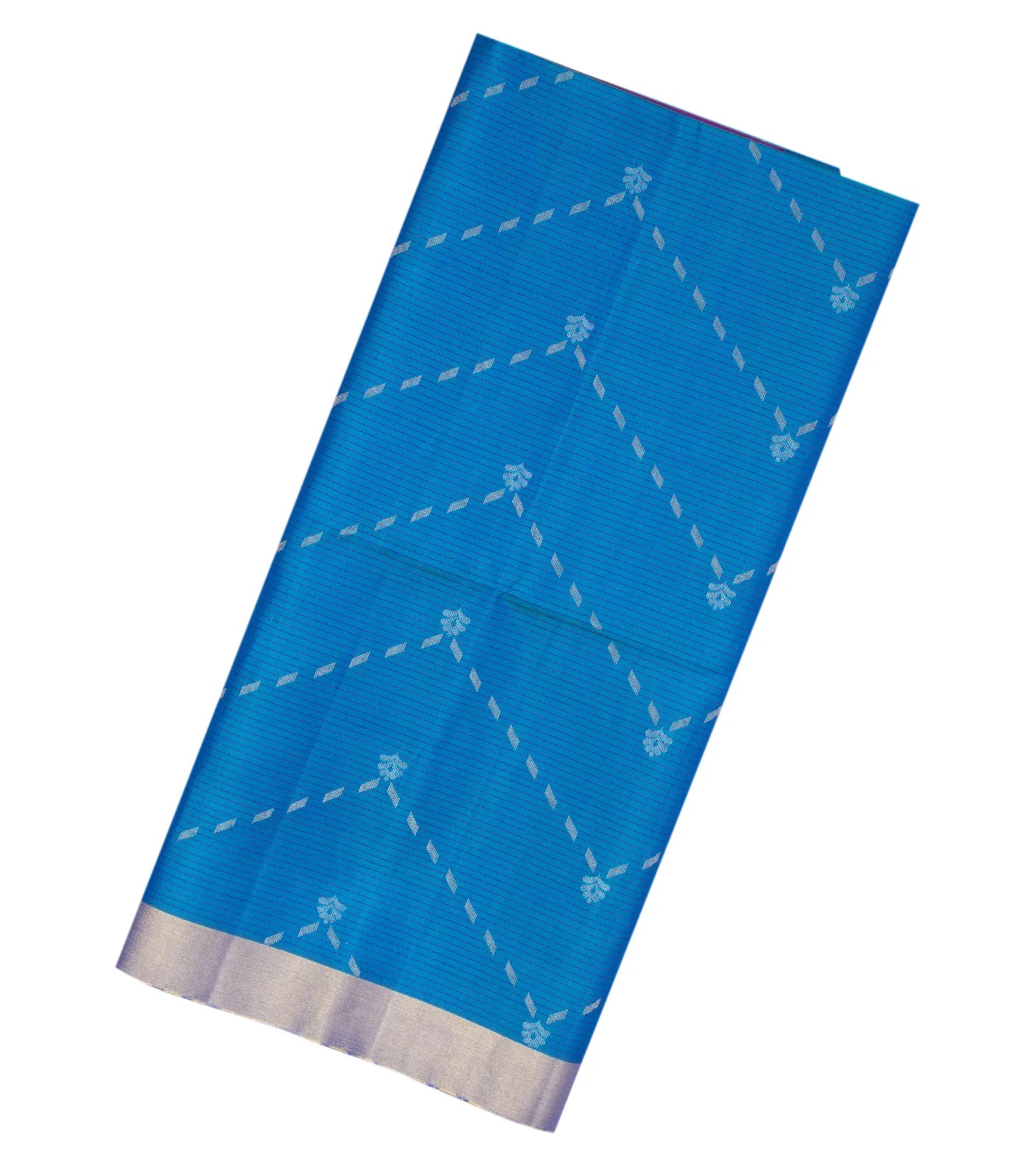 Blue Handloom Soft Silk Saree With Stripes & Floral Motifs-SO3987
