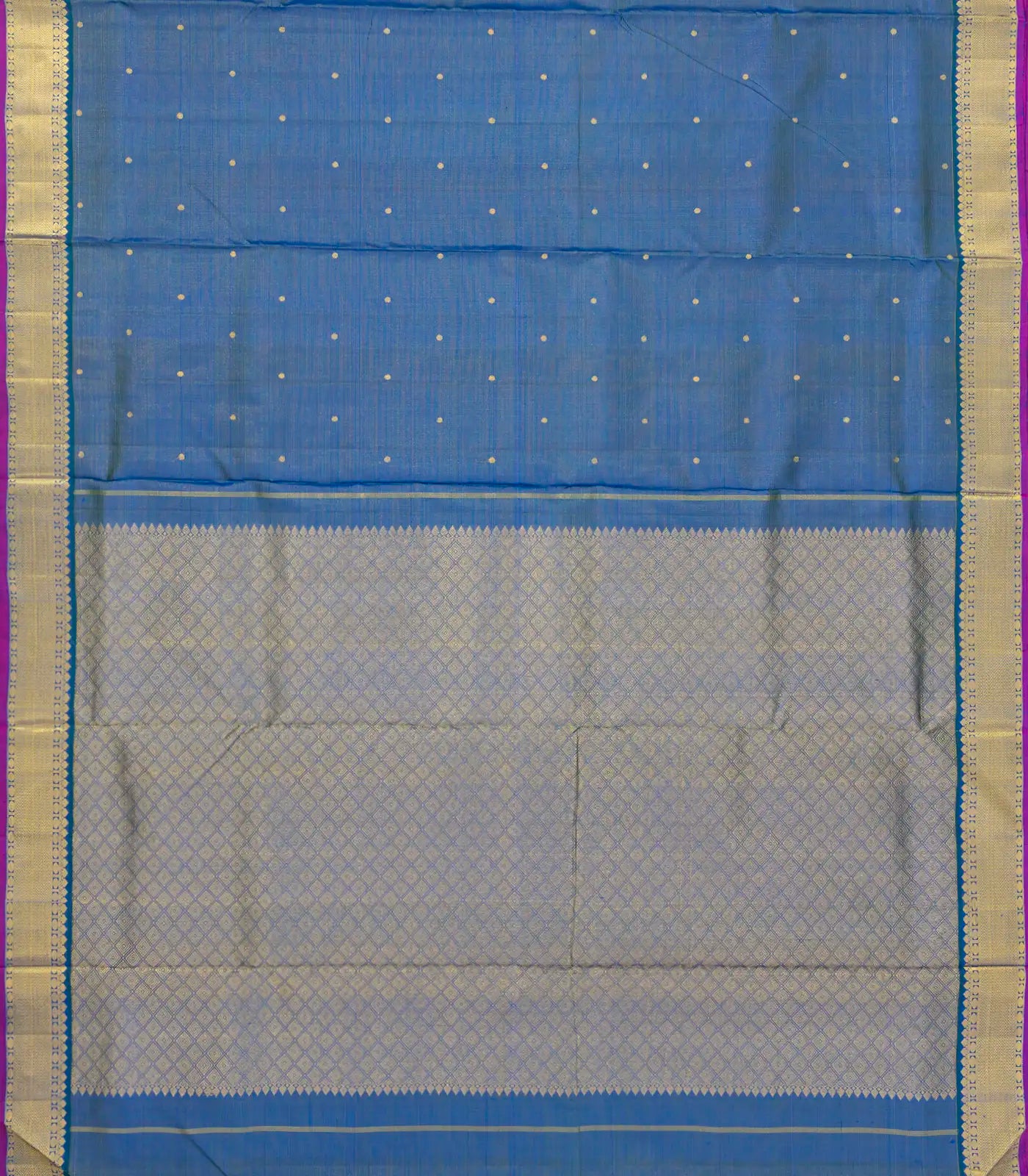 Blue Handloom Vairaoosi Kanchipuram 9 Yards Silk Saree With Stripes & Buttas-KA13388