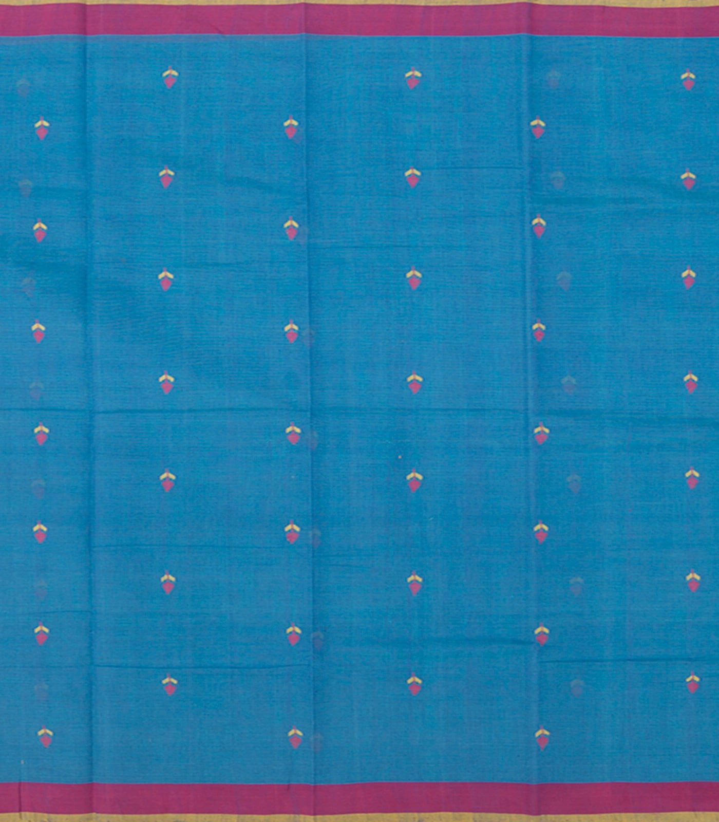 Blue Handwoven Uppada Cotton Saree With Floral Motifs