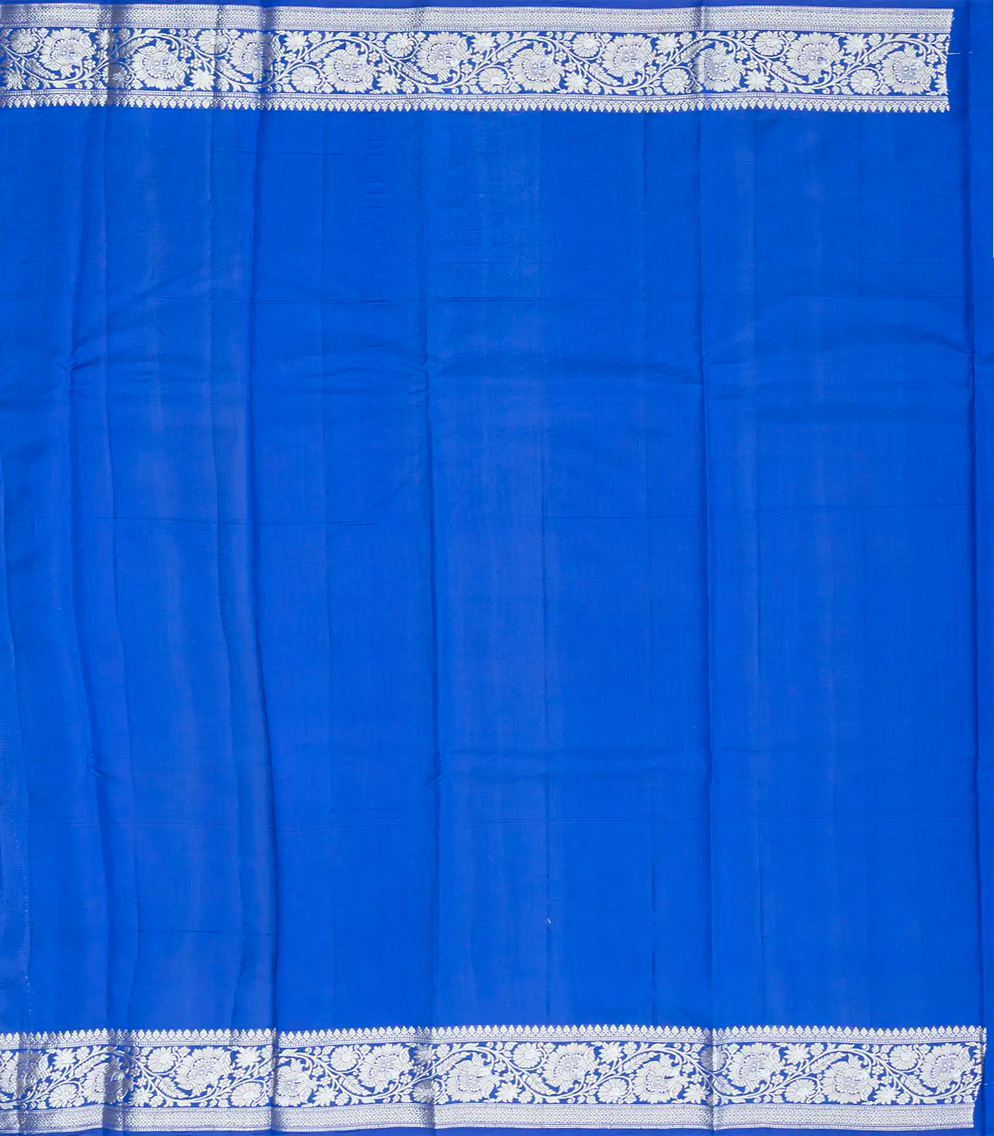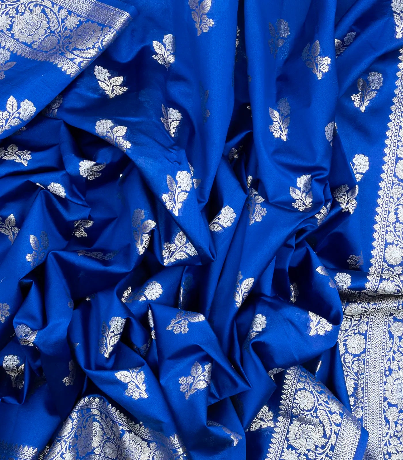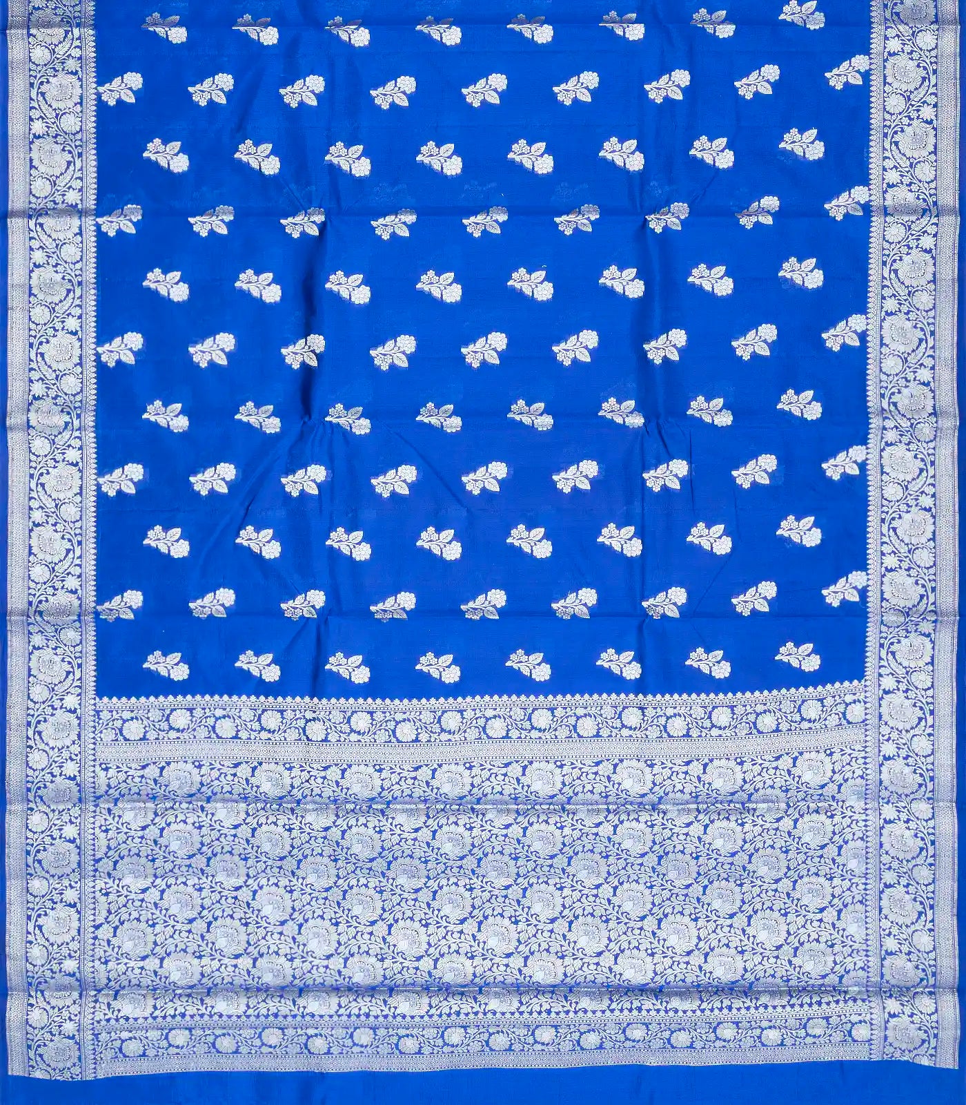 This woven dupion silk saree is filled with floral buttas in blue body along with floral zari border and pallu-DS0518