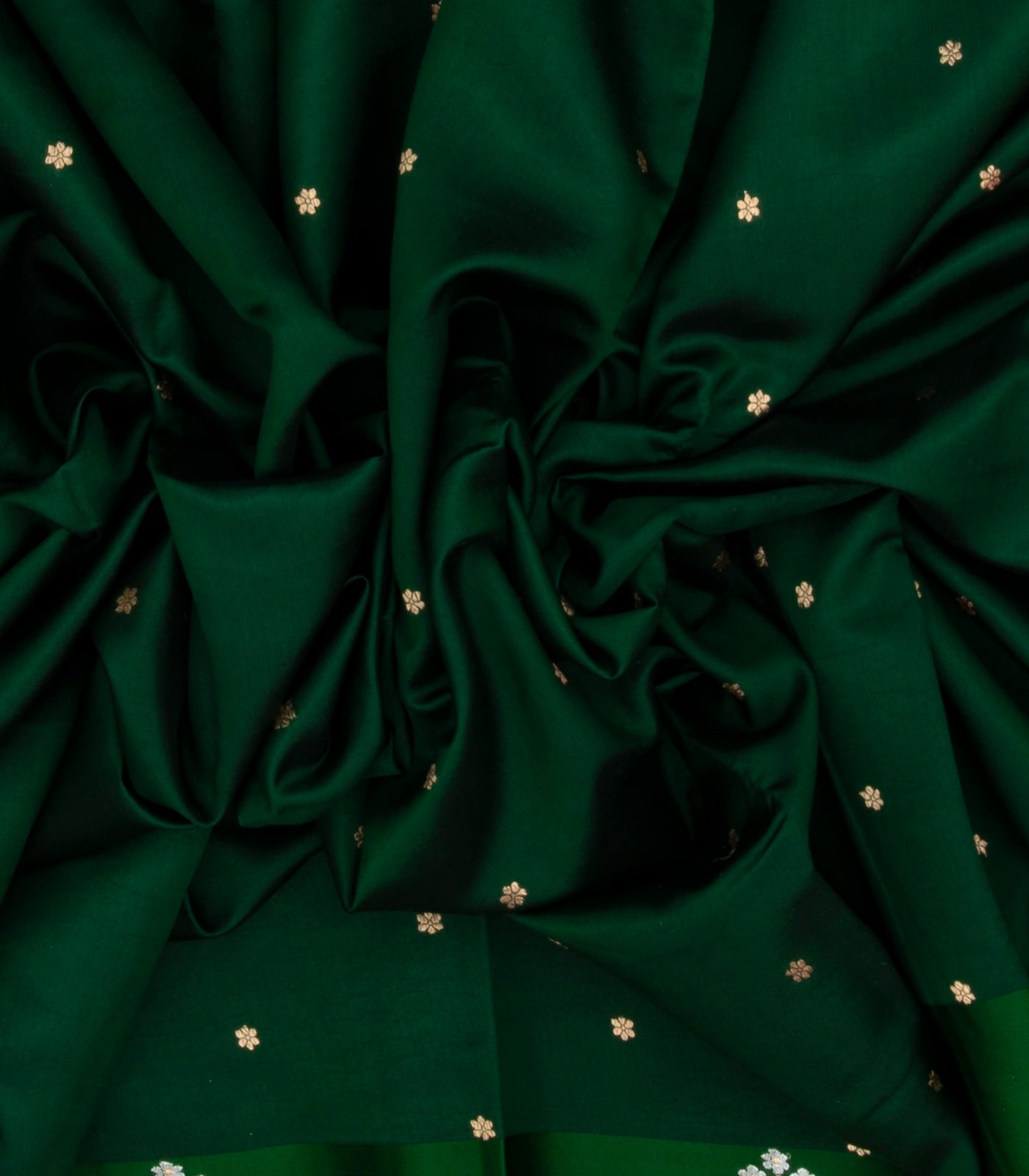 Bottle Green Handloom Banarasi Silk Saree With Floral Buttas-BE1468