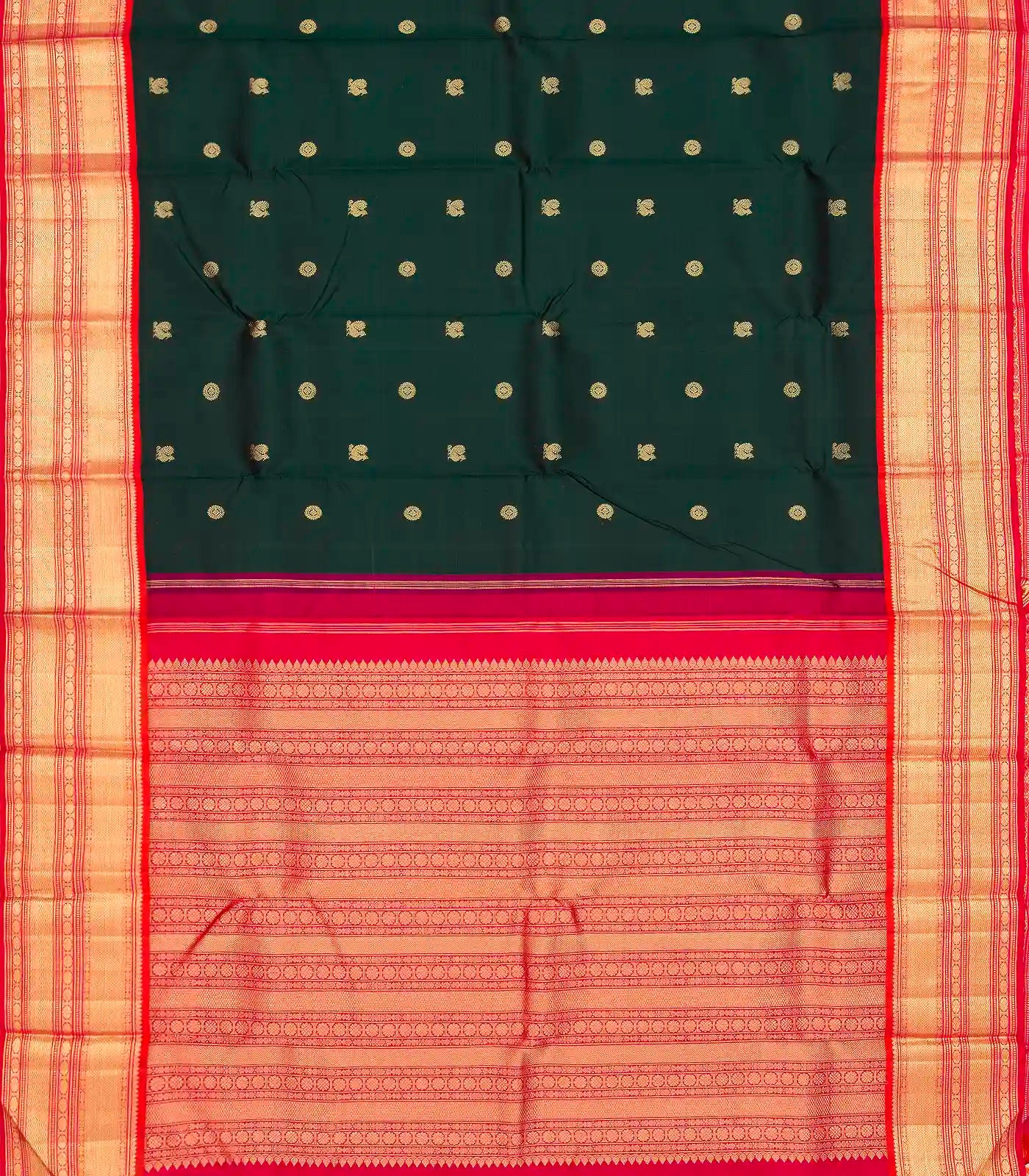 Bottle Green Handloom Korvai Kanchipuram Silk Saree With Buttas & Contrast Border-KA13012