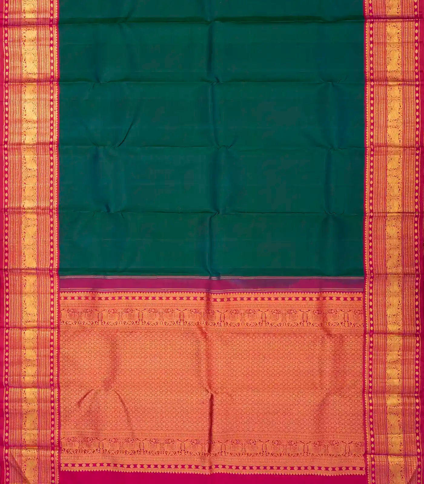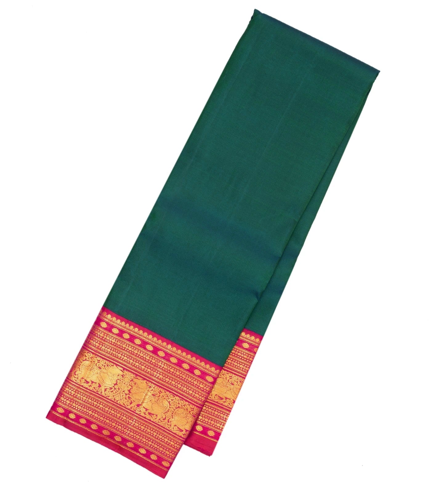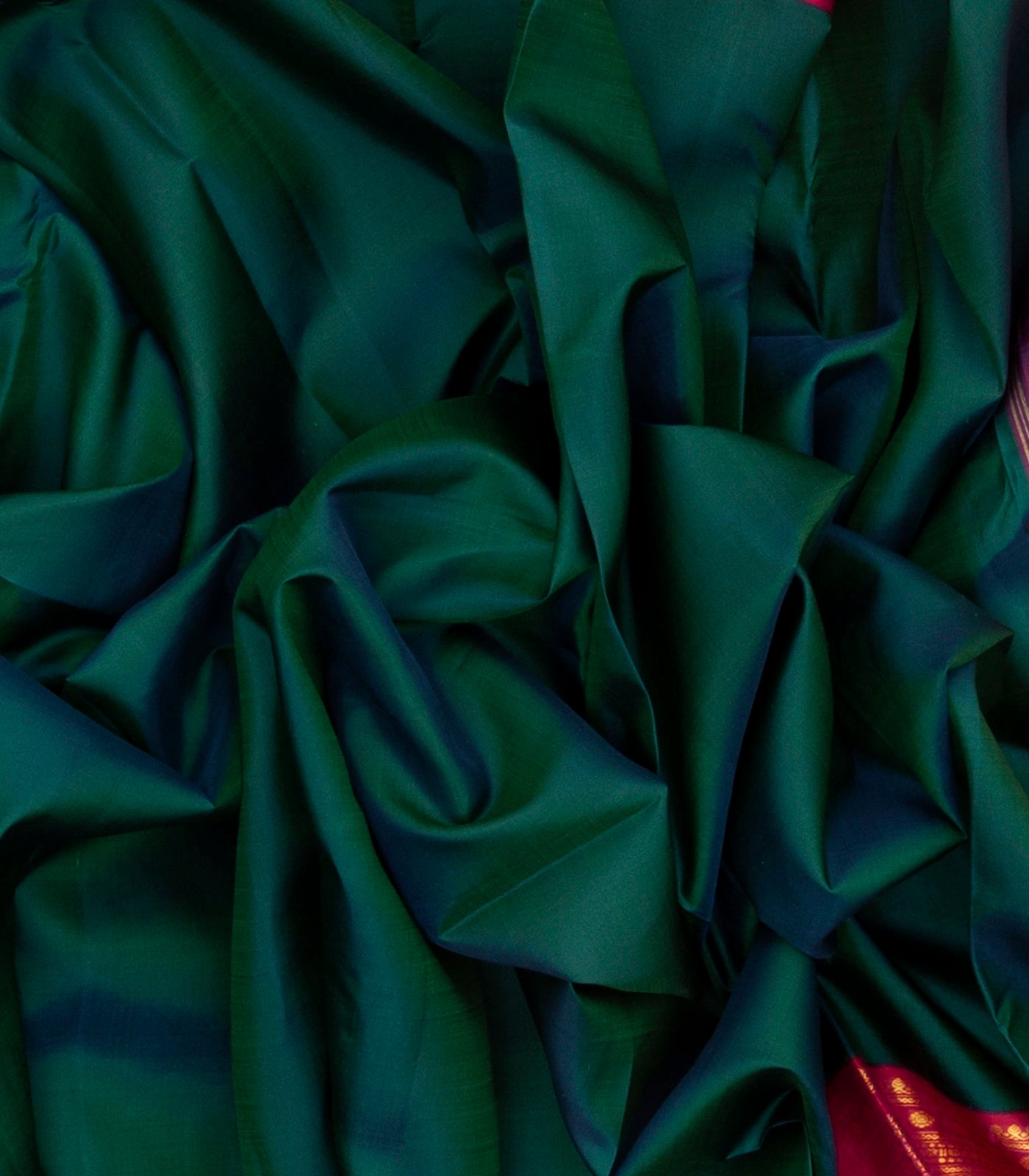 Bottle Green Handloom Korvai Kanchipuram Silk Saree With Contrast Border-KA12270