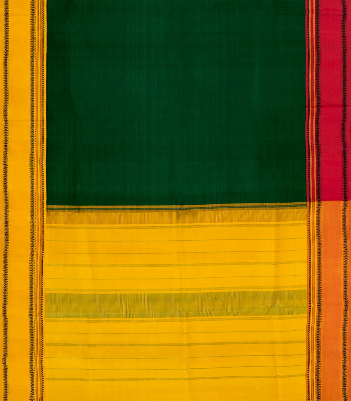 Bottle Green Handloom Korvai Kanchipuram Silk Saree With Ganga Jamuna Border-KA14805