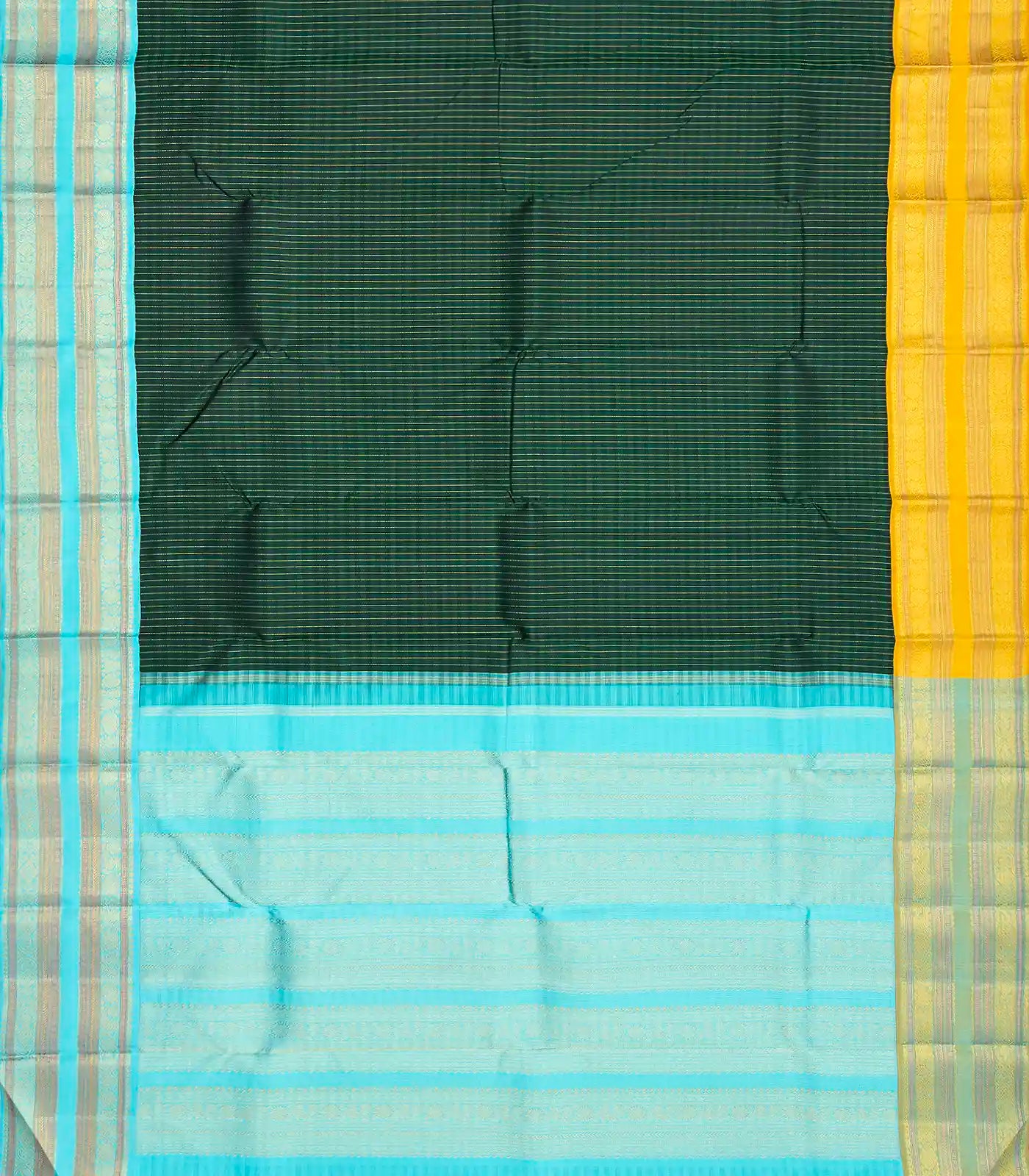 Bottle Green Handloom Korvai Kanchipuram Silk Saree With Zari Stripes-KA12609