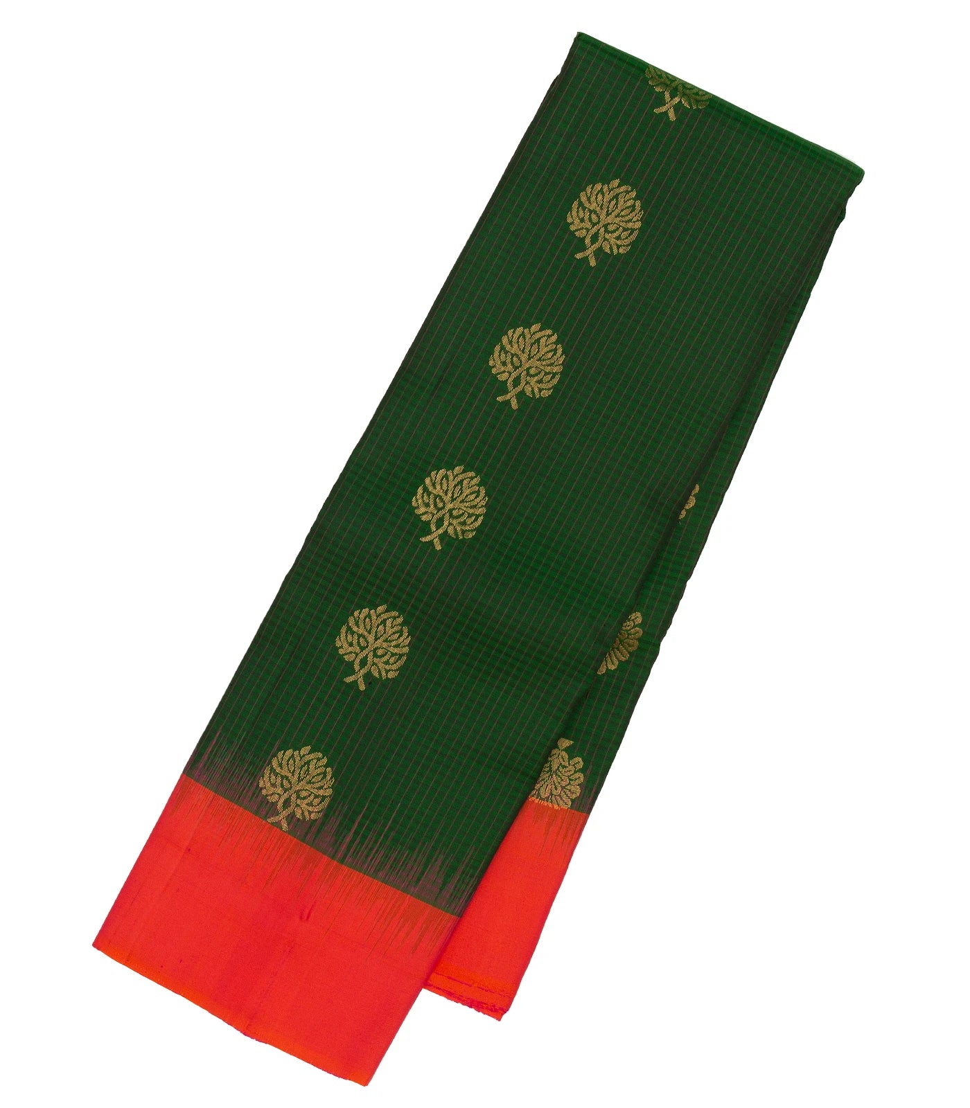 Bottle Green Handloom Soft Silk Saree With Buttas & Contrast Border-SO4034