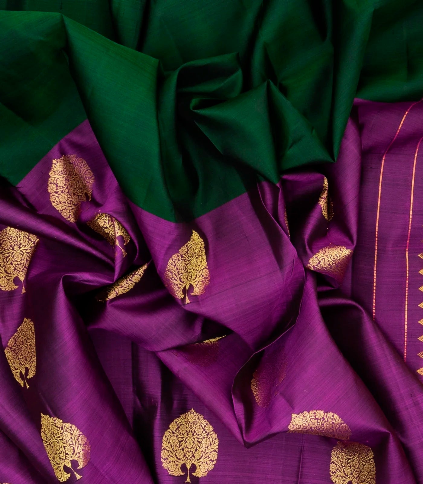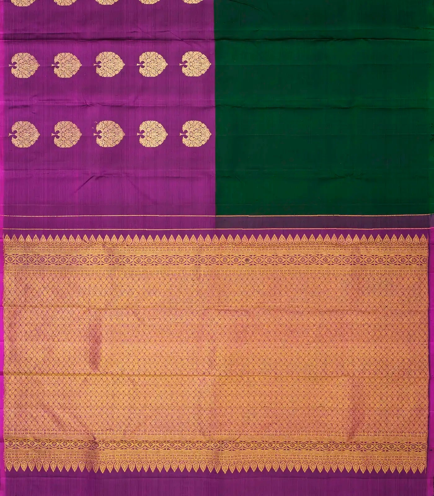 Bottle Green & Magenta Woven Half & Half Kanchipuram Silk Saree With Floral Buttas-KA12136