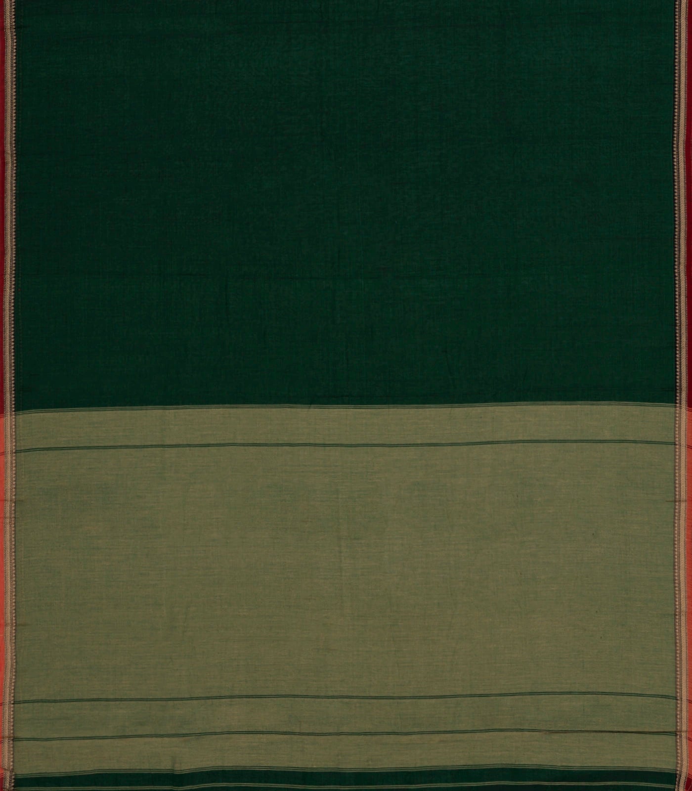 This woven chirala cotton saree is filled with plain bottle green body along with contrast border and pallu