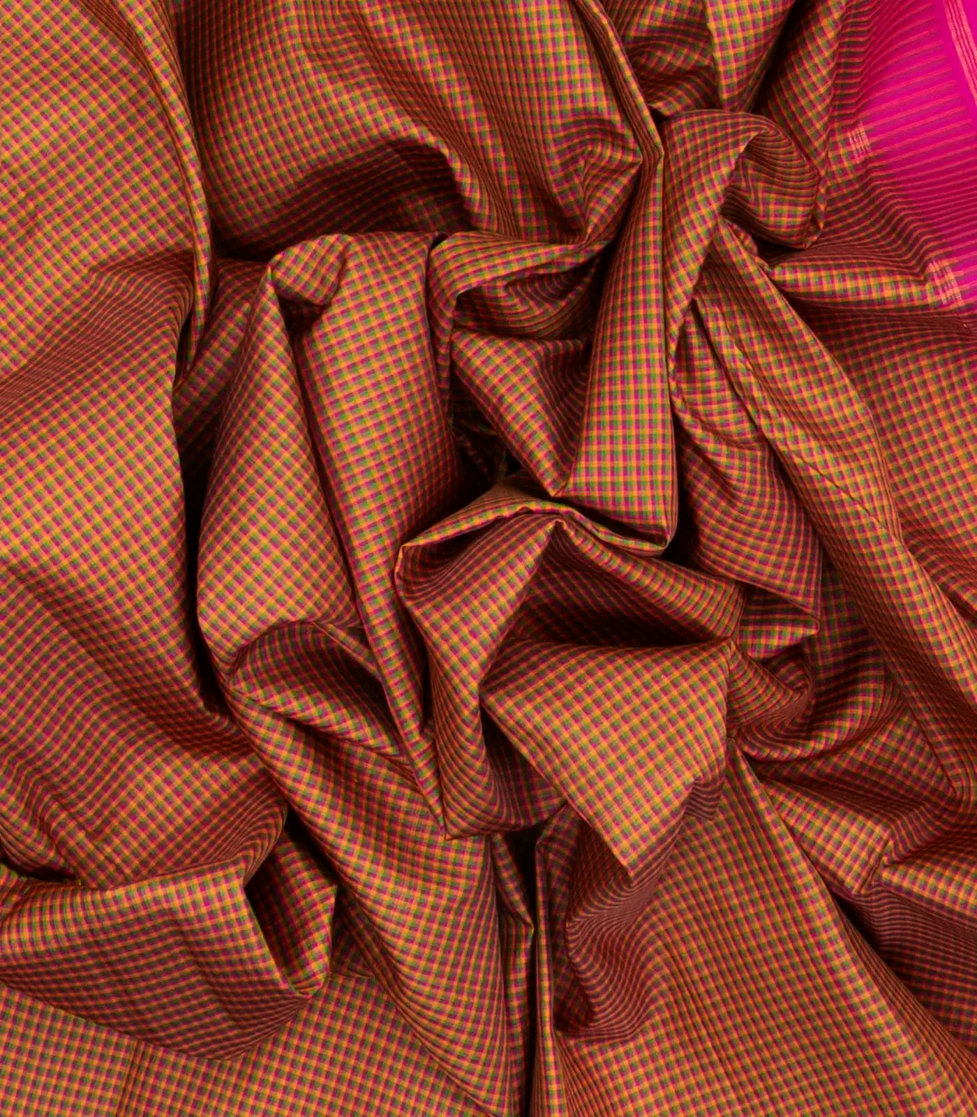 Brown Handloom Kanchipuram Silk Saree With Poppy Seed Checks-KA12245