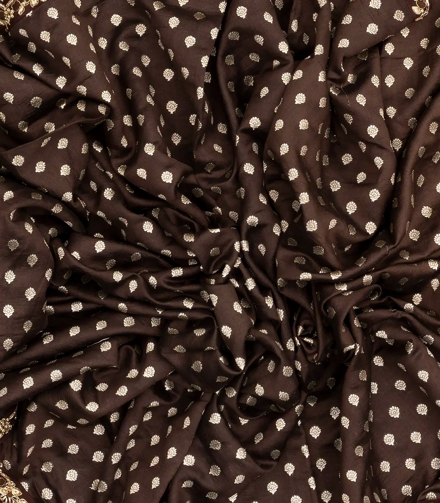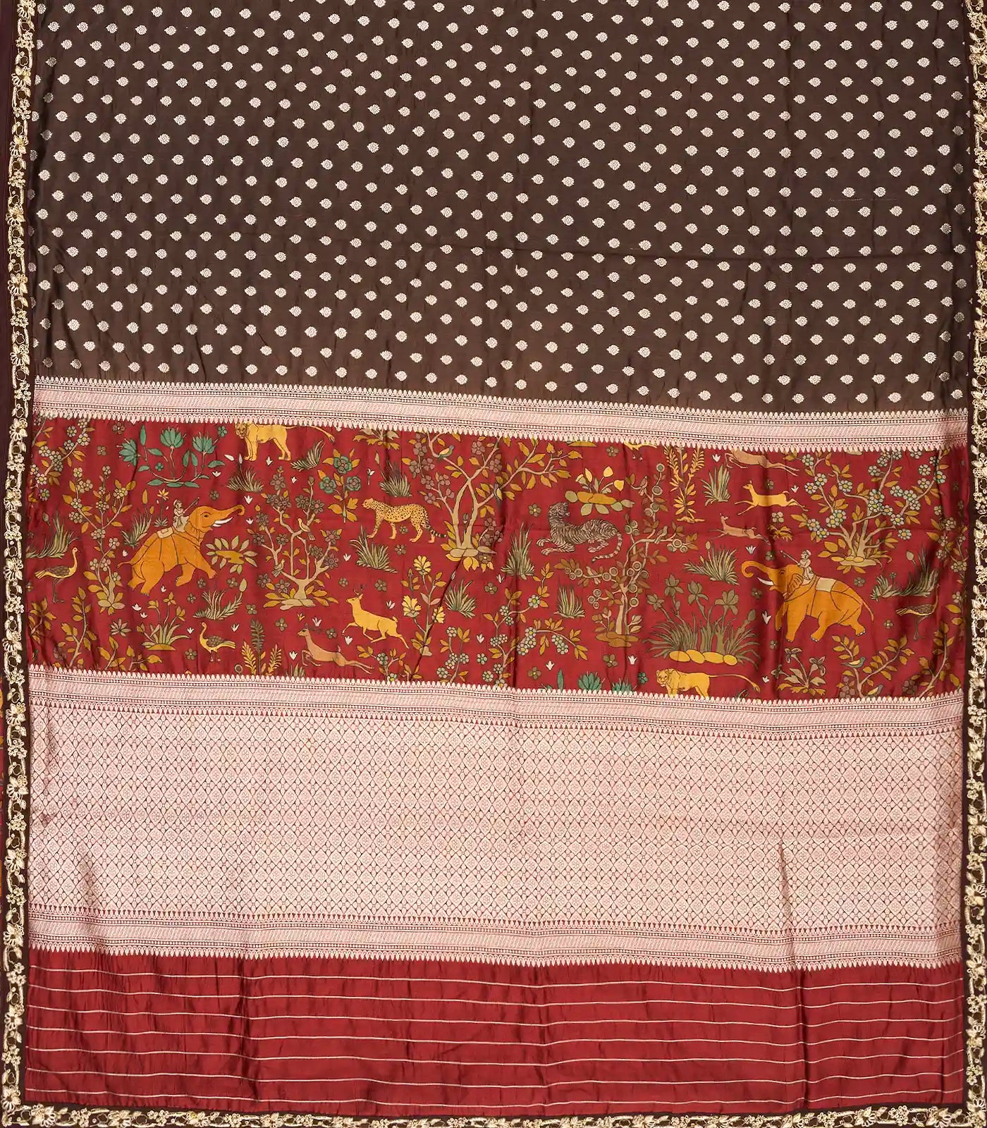 Brown Handloom Silk Saree With Printed Pallu & Hand Embroidered Selvage-EN1718