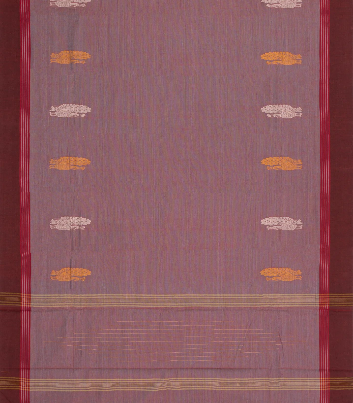 This woven chettinad cotton saree is filled with buttas in brown body along with border and pallu-CN1896