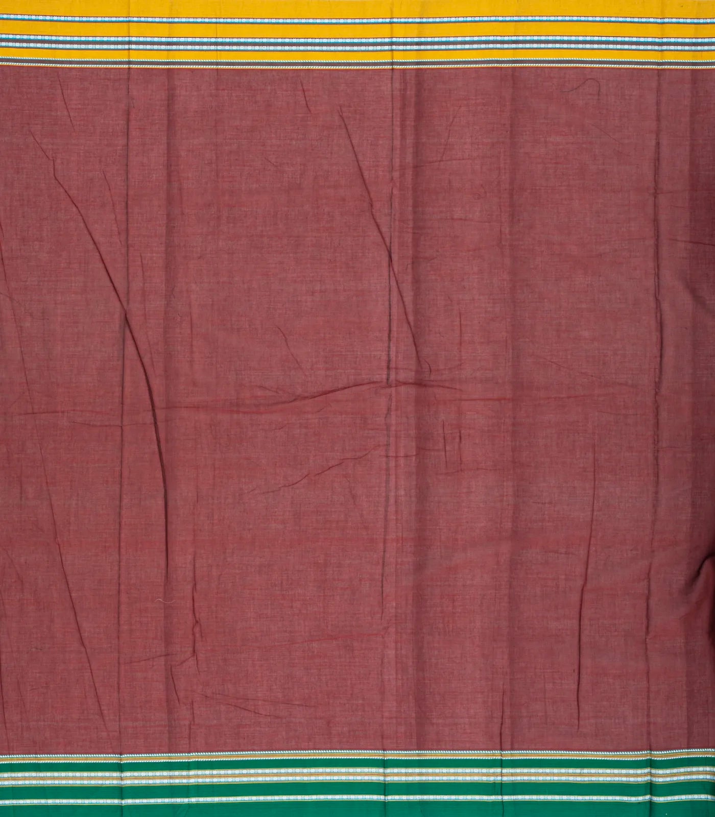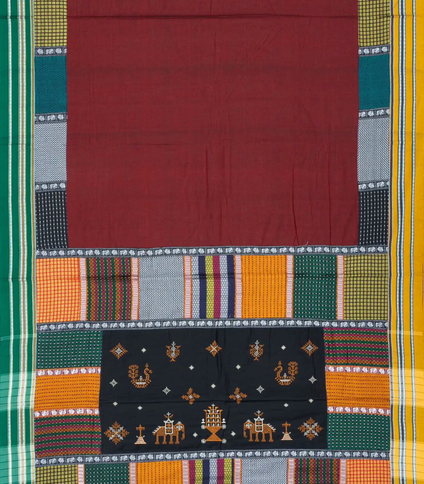 Brown Woven Cotton Saree With Kasuti Hand Embroidered Border & Pallu-EN1771