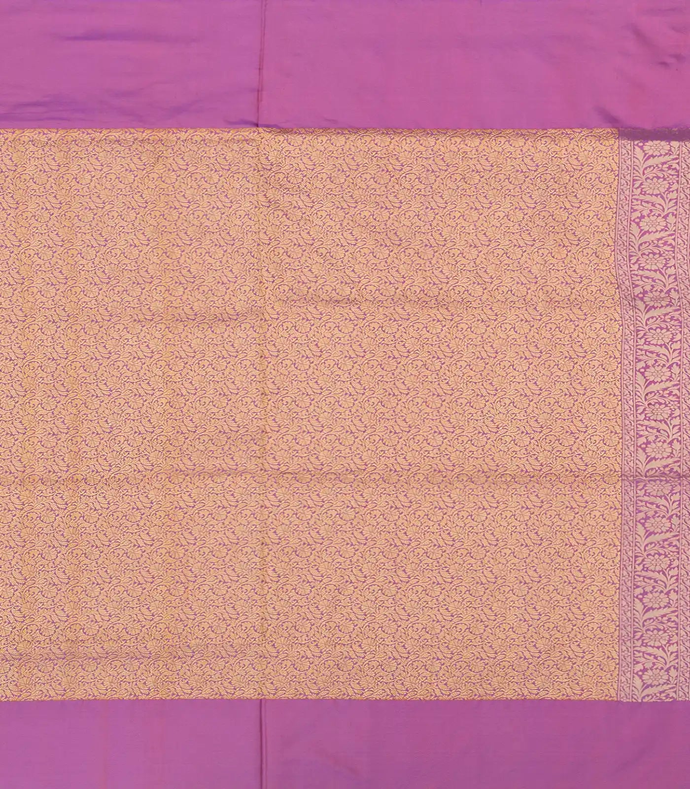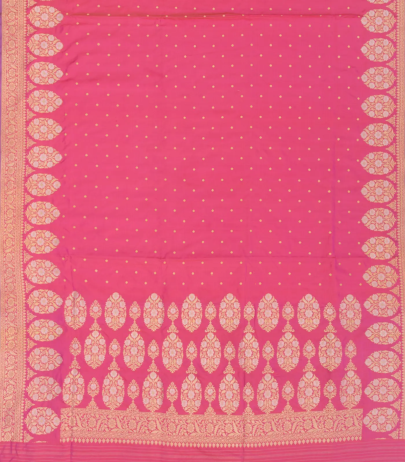 Bubble Gum Pink Handloom Banarasi Silk Saree With Moghul Flower Motifs-BubbleGum Pink