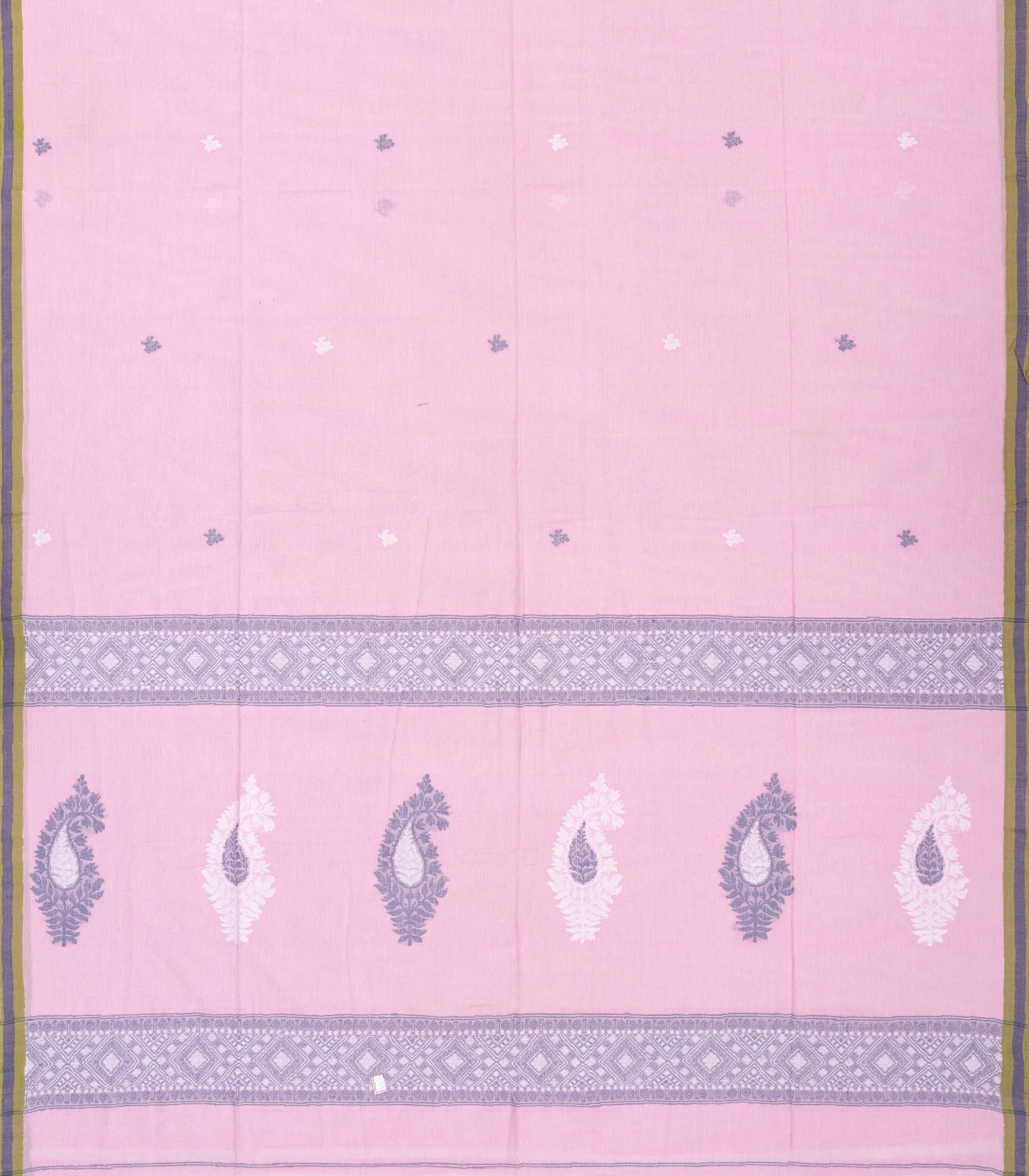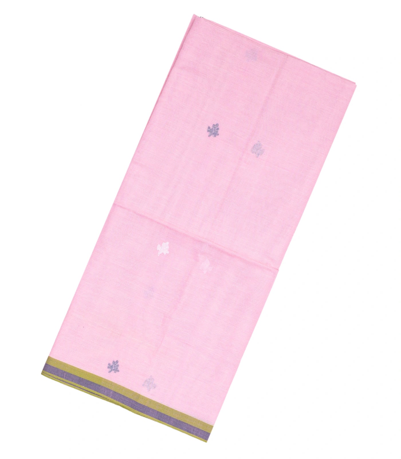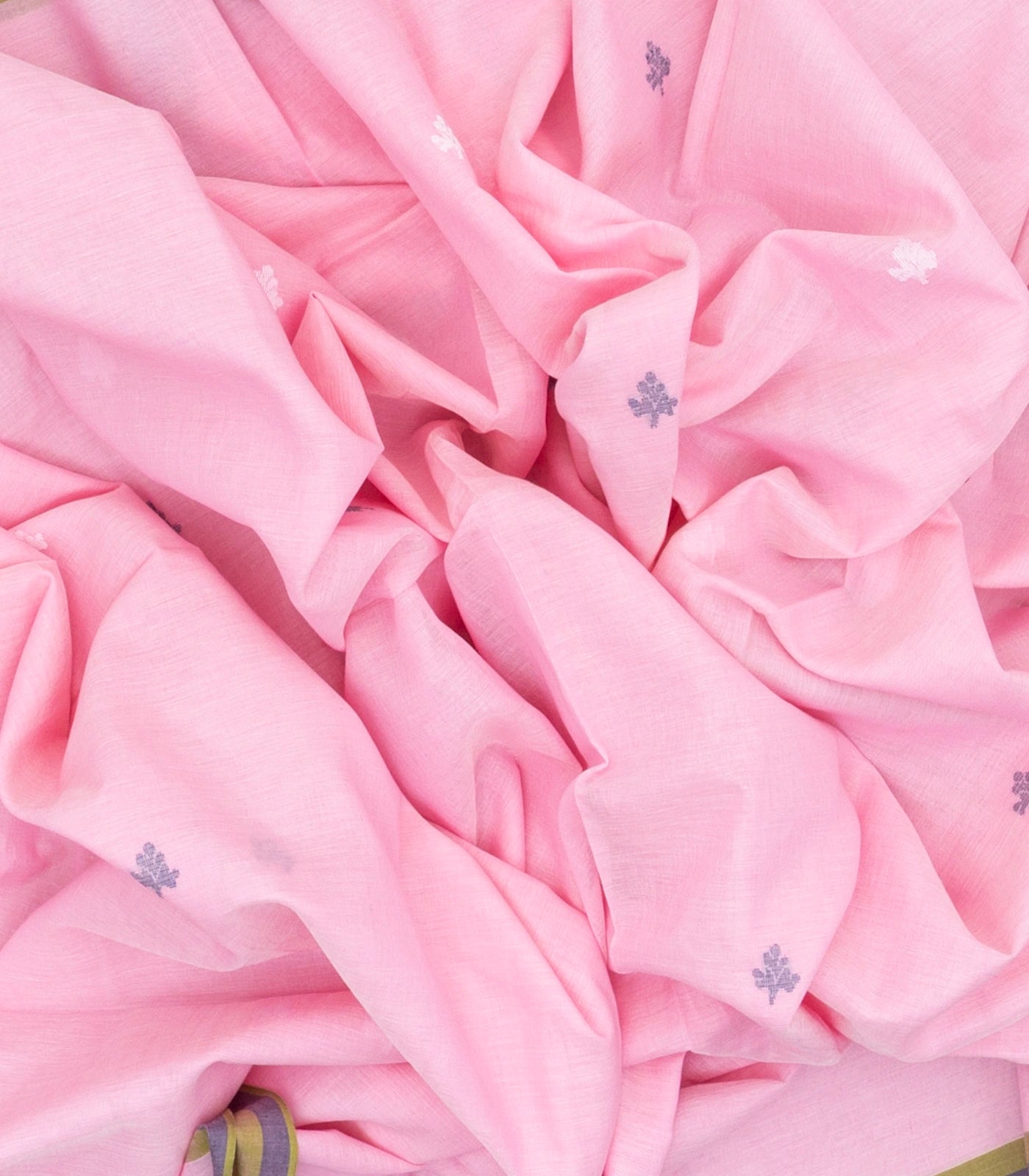 This handwoven bengal cotton saree is filled with floral buttas in BubbleGum pink body along with contrast border and pallu