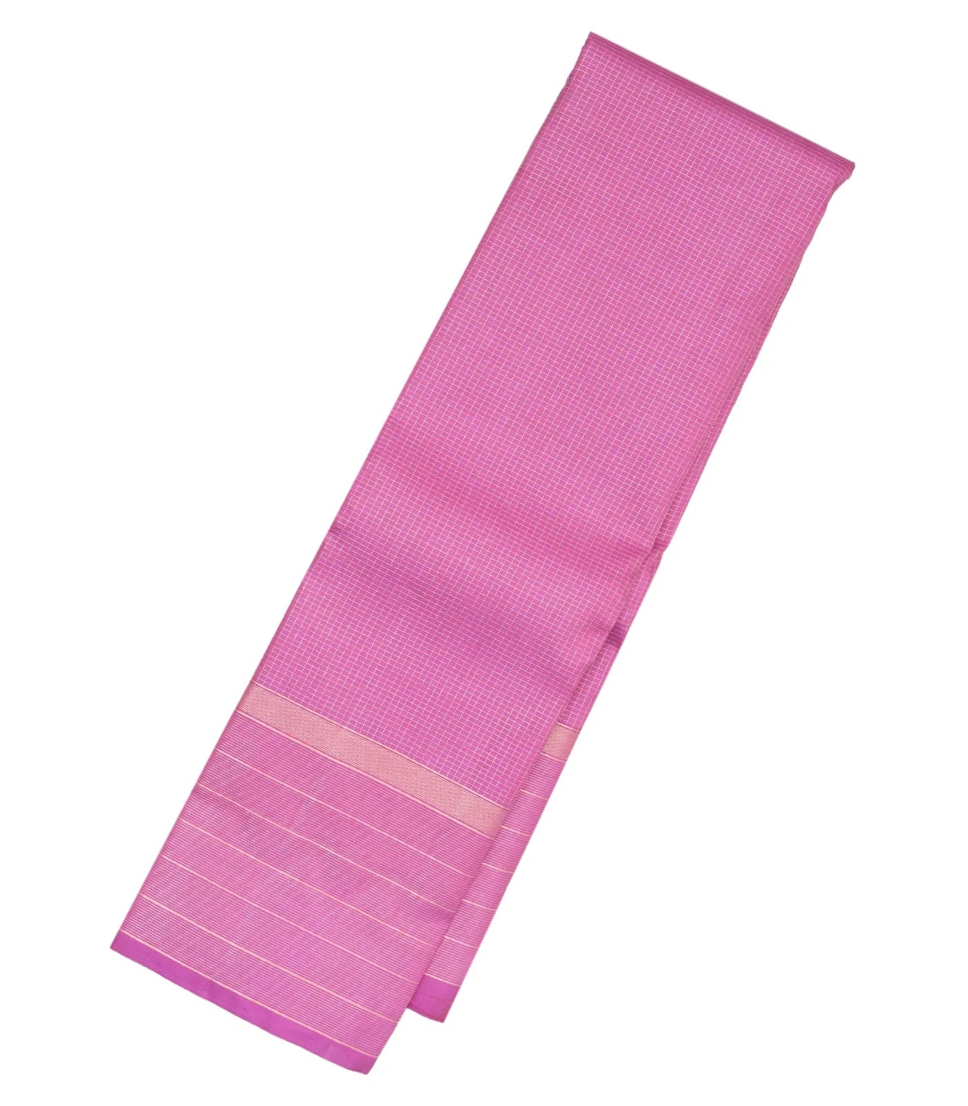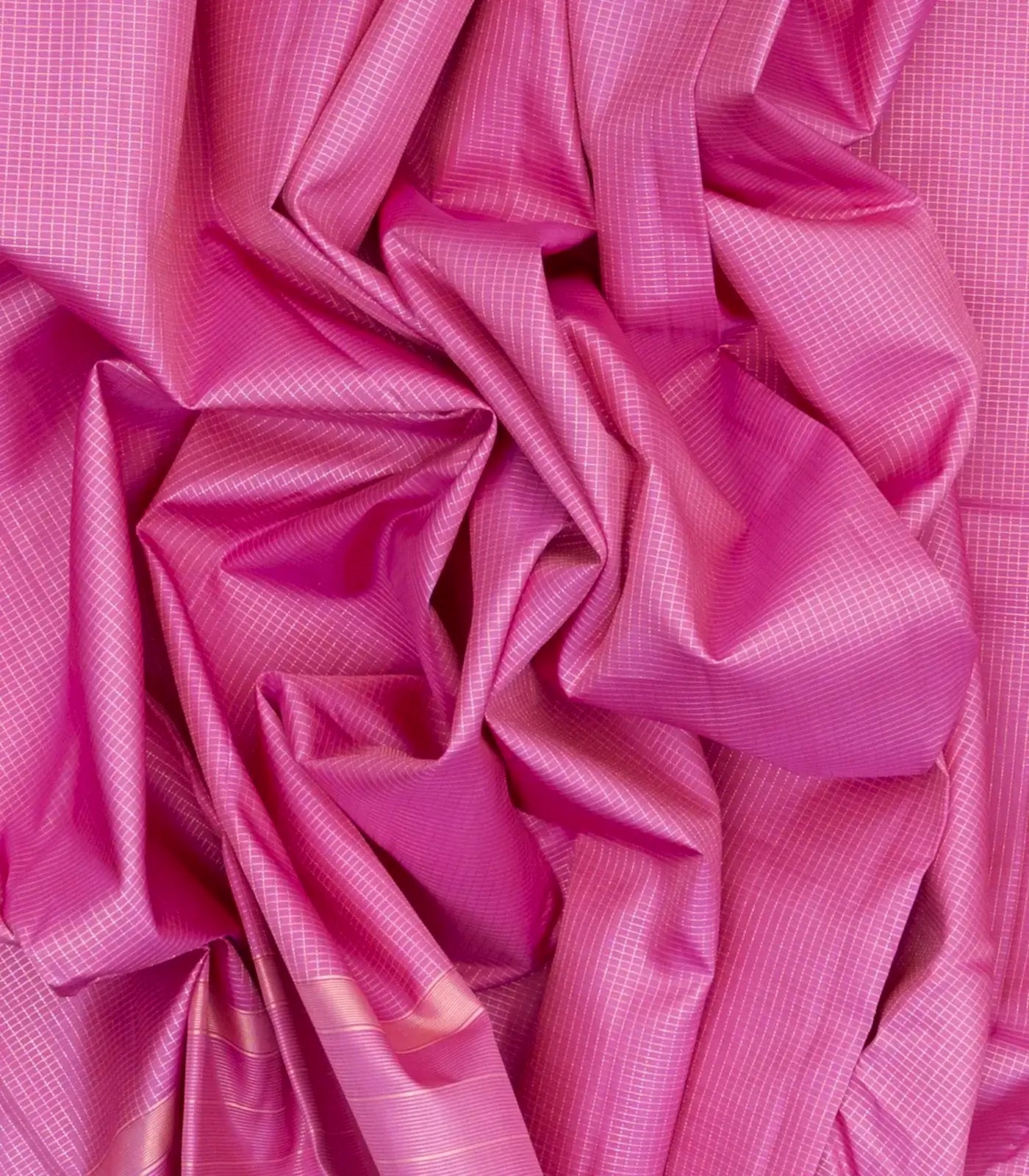 BubbleGum Pink Handloom Kanchipuram Silk Saree With Checks-KA12299