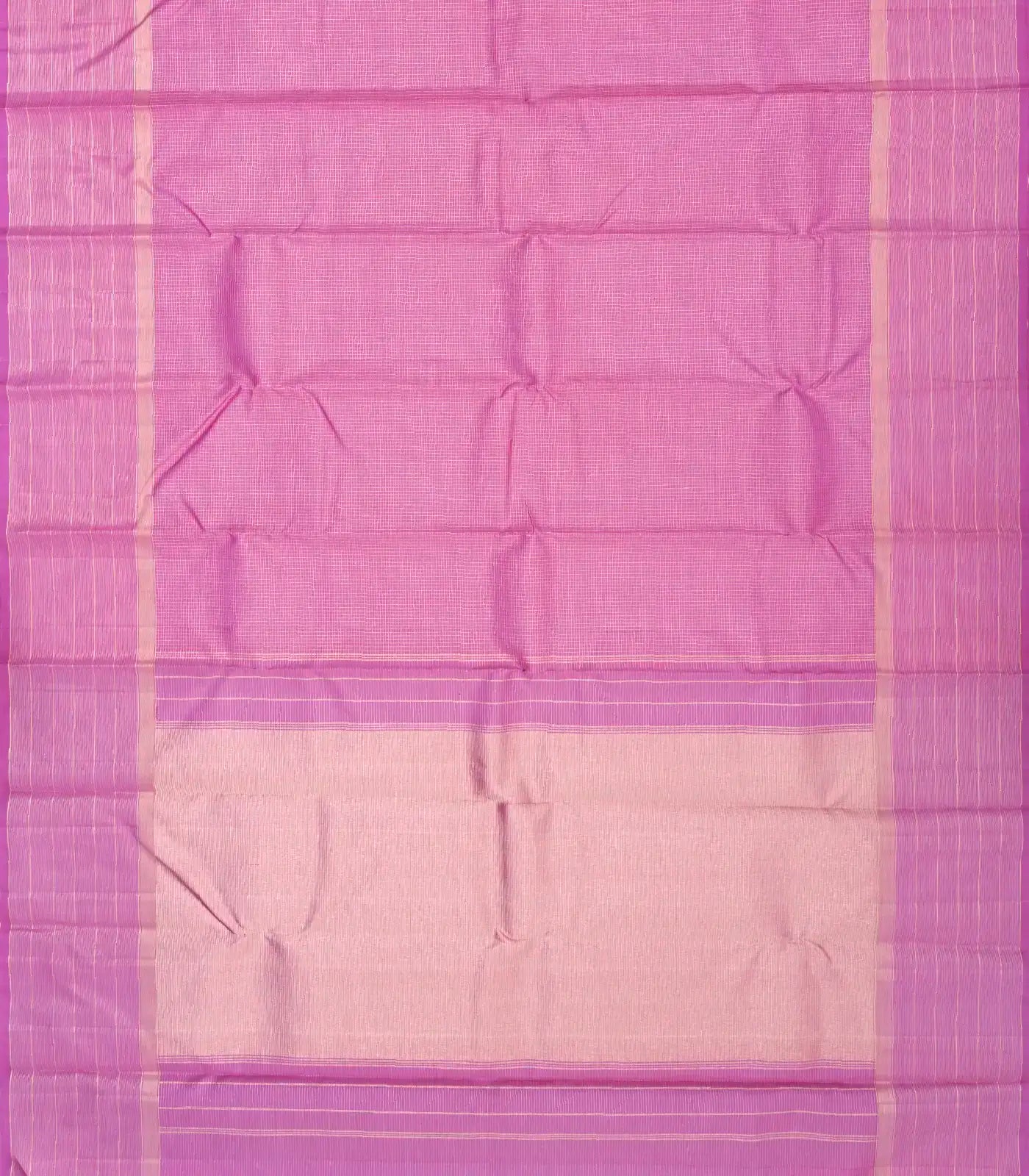 This handwoven kanchipuram silk saree is filled with checks in BubbleGum pink body along with zari stripes border and pallu
