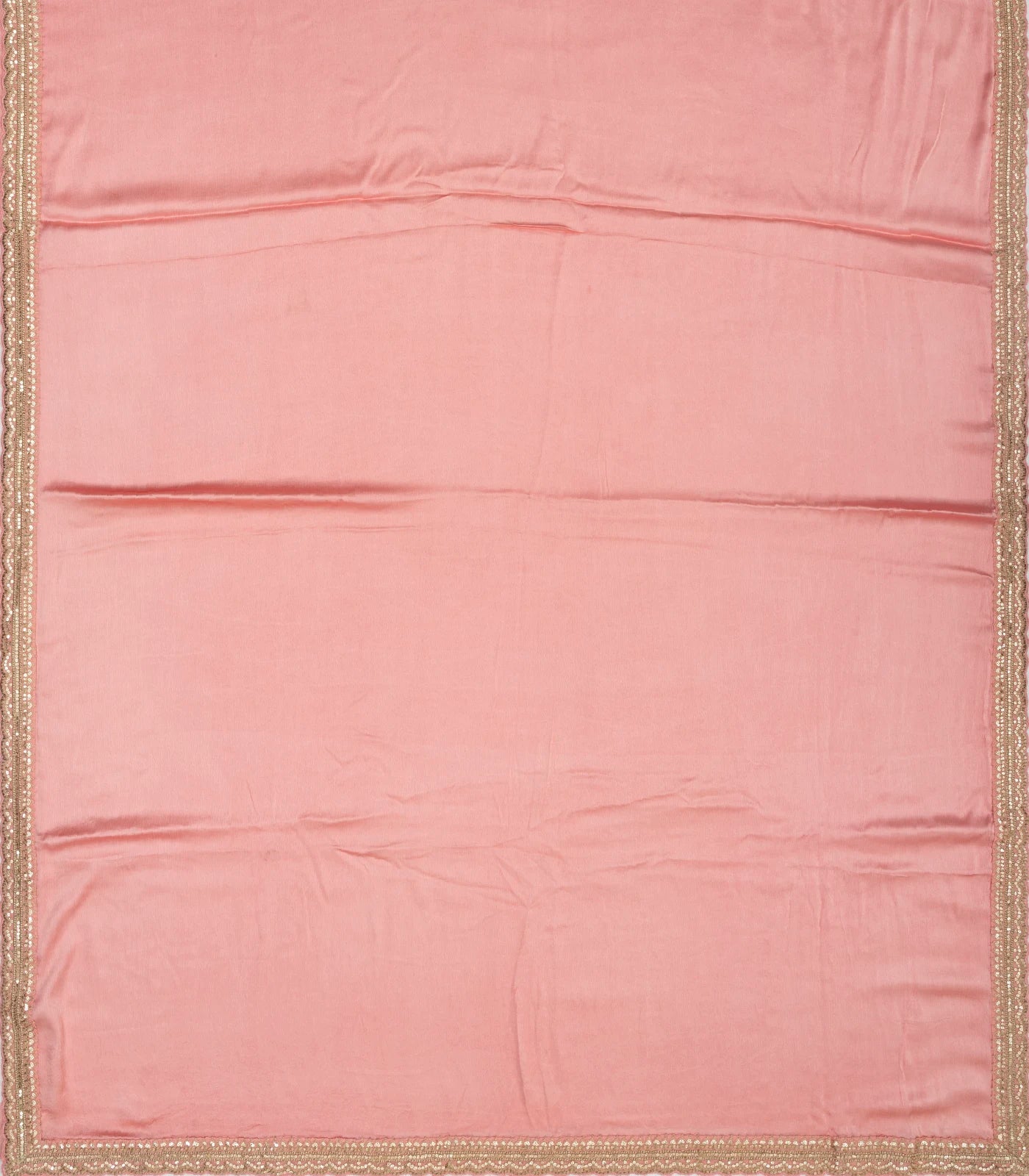 This woven banarasi satin saree is filled with plain Bubblegum pink body along with embroidered motifs in border and pallu